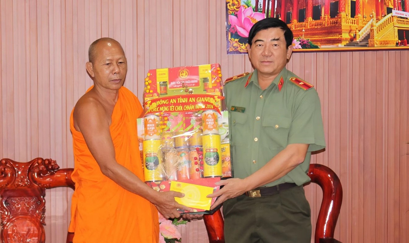 Giám đốc Công an tỉnh chúc Tết cổ truyền Chol Chnam Thmay Chùa Cà Nhung