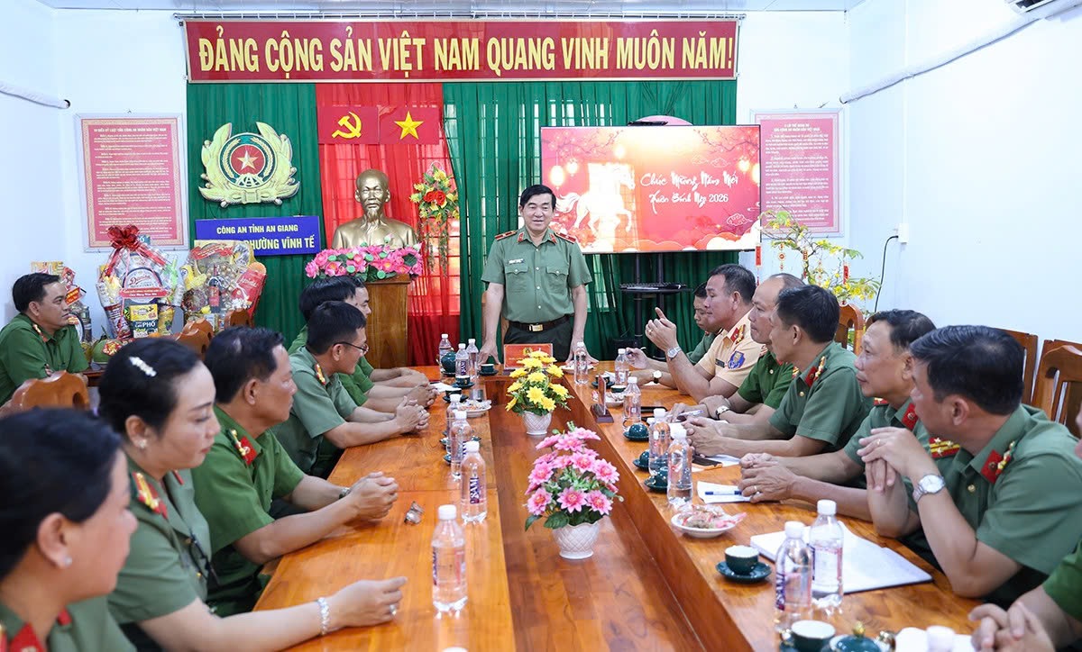 ‎ Chiều ngày 20/2/2026, Đoàn công tác của Công an tỉnh do đồng chí Thiếu tướng Nguyễn Văn Hận, Ủy viên Ban Thường vụ Tỉnh ủy, Bí thư Đảng ủy, Giám đốc Công an tỉnh làm Trưởng đoàn đã đến thăm, động viên cán bộ, chiến sĩ ứng trực đảm bảo an ninh trật tự, trật tự an toàn giao thông Tết Nguyên đán tại Công an hai phường Vĩnh Tế, Châu Đốc và Trạm Cảnh sát giao thông Châu Phú, thuộc Phòng Cảnh sát giao thông Công an tỉnh.