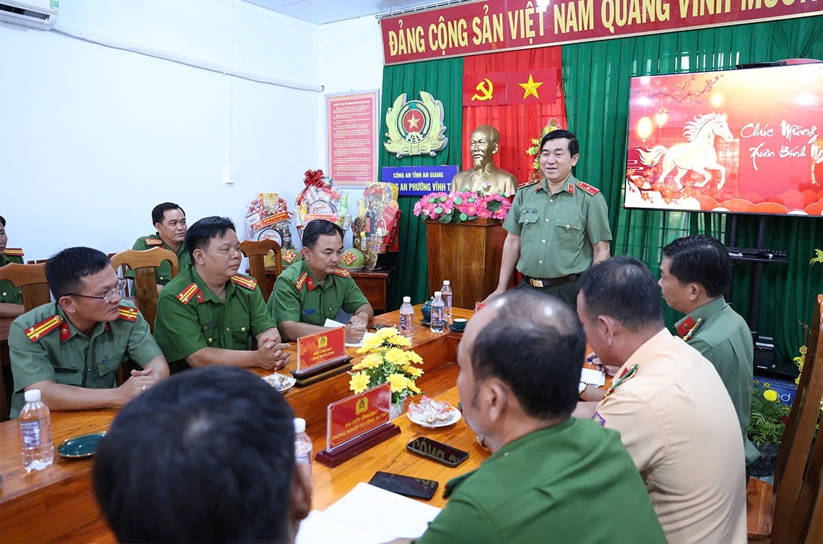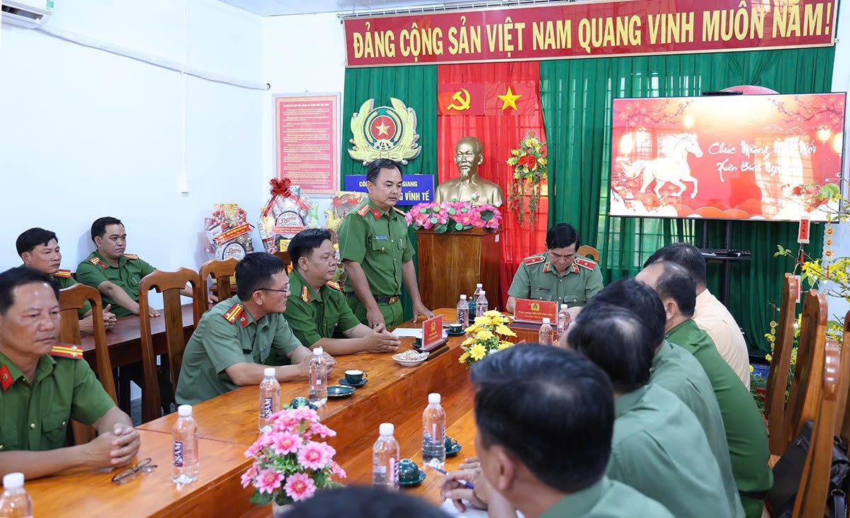 Phát biểu chỉ đạo tại buổi đến thăm, đồng chí Thiếutướng Nguyễn Văn Hận, Giám đốc Công an tỉnh ghi nhận, biểu dương tinh thần chủ động, nghiêm túc trong triển khai phương án trực ban, trực chiến nhằm kịp thời xử lý những tình huống phát sinh ngay từ cơ sở, đảm bảo an ninh trật tự cho Nhân dân vui Xuân, đón Tết. Đồng thời chia sẻ những khó khăn, vất vả của cán bộ, chiến sĩ, nhất là Công an phường Vĩnh Tế, động viên từng đồng chí cố gắng khắc phục, vượt qua mọi khó khăn, thử thách, phấn đấu hoàn thành tốt mọi nhiệm vụ được giao. Đồng chí Giám đốc Công an tỉnh cũng quán triệt một số nhiệm vụ trọng tâm trong thời gian tới. Theo đó, yêu cầu Công an phường Vĩnh Tế và Châu Đốc tiếp tục bám sát nhiệm vụ bảo đảm an ninh, trật tự; chủ động nắm chắc tình hình, xử lý tốt những vấn đề phát sinh, không để bị động, bất ngờ trong mọi tình huống.