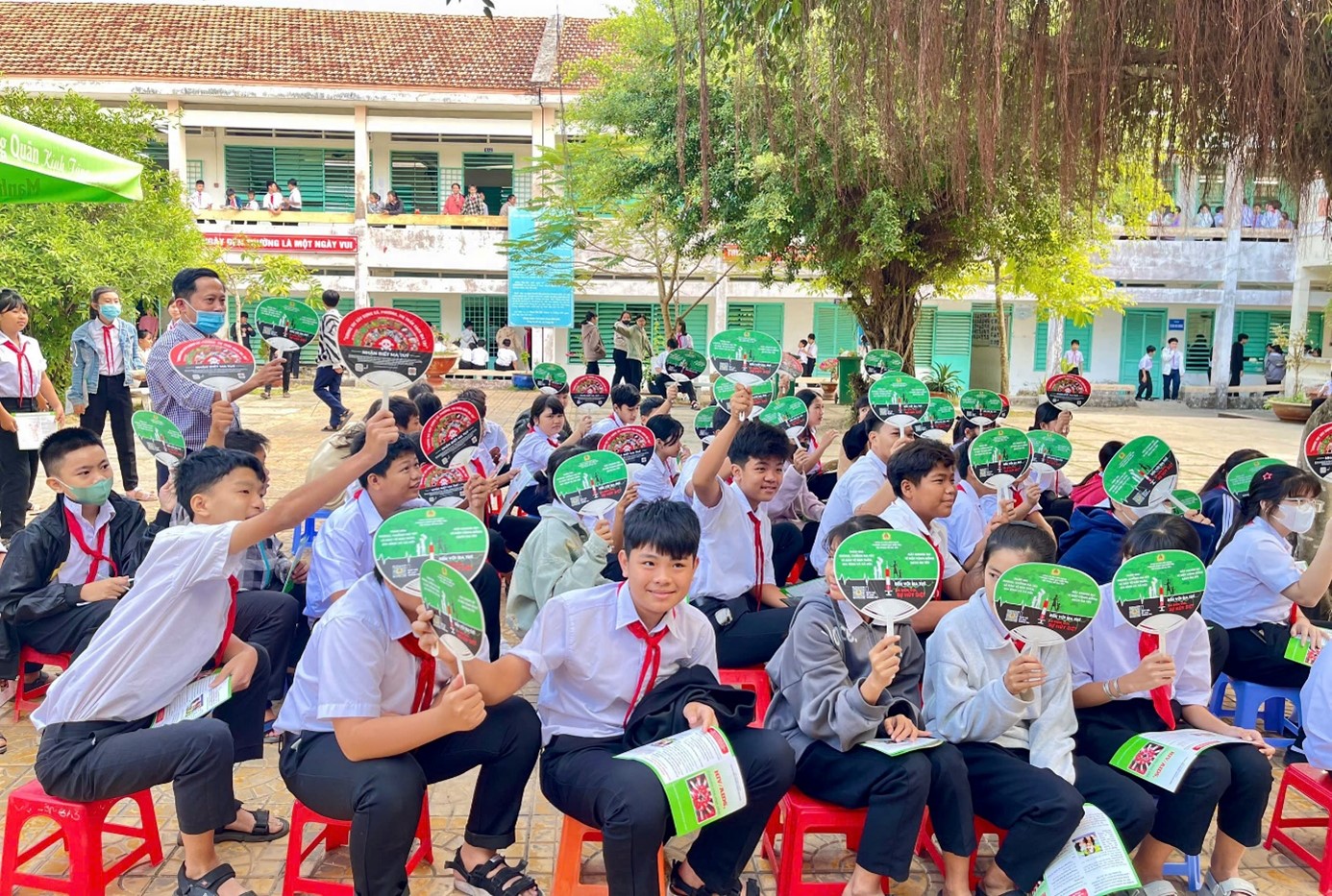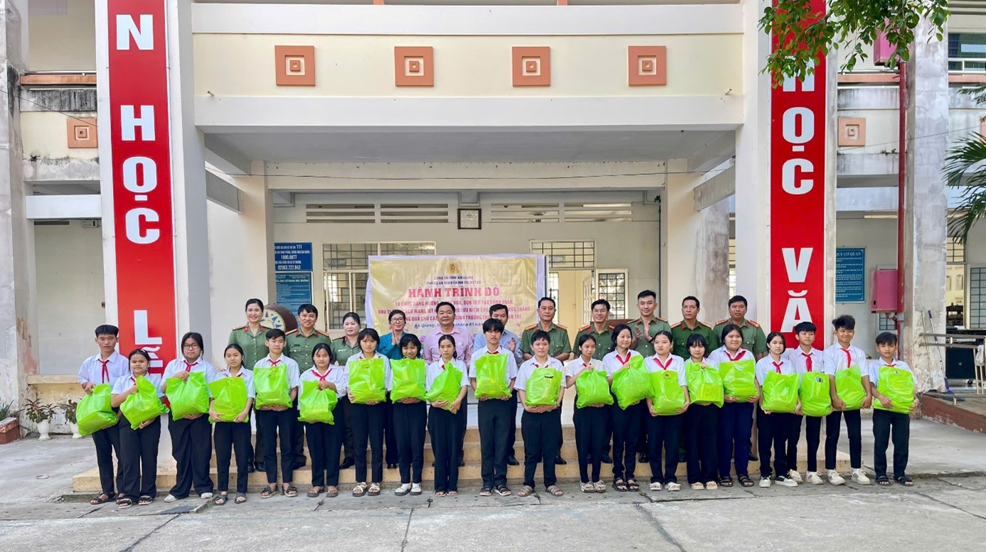 Tiếp nối hành trình đỏ, Phòng An ninh chính trị nội bộ đã phối hợp Công an phường Bình Đức và nhóm thiện nguyện Xuân Trang tổ chức thăm hỏi, trao tặng 100 suất quà (gồm bánh, sữa, dụng cụ học tập…) cho các em học sinh có hoàn cảnh khó khăn vượt khó học giỏi tại Trường THCS Phan Văn Trị (phường Bình Đức); tổng giá trị khoảng 20 triệu đồng. Đồng thời, thông qua chương trình, cán bộ, chiến sỹ Phòng An ninh chính trị nội bộ đã lồng ghép tuyên truyền, phổ biến các quy định của pháp luật về trật tự an toàn giao thông, phòng chống ma túy, HIV/AIDS đến các em học sinh nhằm nâng cao nhận thức về pháp luật và tinh thần cảnh giác cho các em.