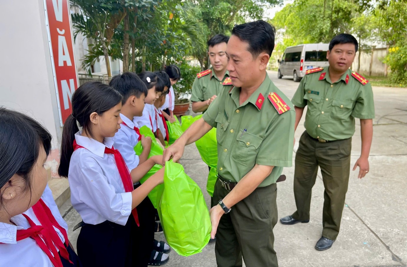 Phòng An ninh chính trị nội bộ trao tặng quà cho các em học sinh Trường THCS Phan Văn Trị (phường Bình Đức)