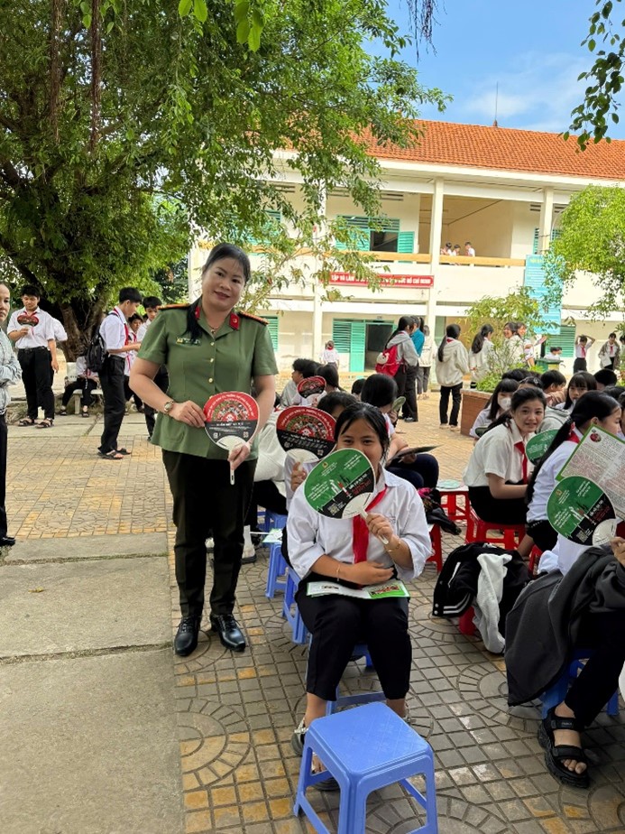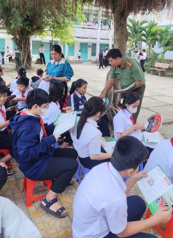 Phòng An ninh chính trị nội bộ cấp phát tờ rơi, quạt tuyên truyền pháp luật