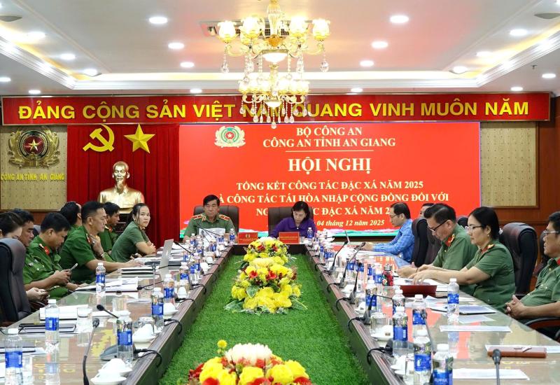 Ngày 04/12/2025, Bộ Công an tổ chức Hội nghị tổng kết công tác đặc xá và tái hòa nhập cộng đồng đối với người được đặc xá năm 2025. Dự Hội nghị có các đồng chí: Nguyễn Hòa Bình, Ủy viên Bộ Chính trị, Phó Thủ tướng Thường trực Chính phủ, Chủ tịch Hội đồng tư vấn đặc xá năm 2025; Thượng tướng Lê Văn Tuyến, Thứ trưởng Bộ Công an, Ủy viên Thường trực Hội đồng tư vấn đặc xá, Trưởng Ban Chỉ đạo đặc xá Bộ Công an; Cấn Đình Tài, Phó Chủ nhiệm Văn phòng Chủ tịch nước; Trần Hải Quân, Phó Viện trưởng Viện Kiểm sát nhân dân tối cao. Hội nghị được tổ chức trực tuyến đến Công an các tỉnh, thành phố trên toàn quốc. Tham dự tại điểm cầu Công an tỉnh An Giang có đồng chí Thiếu tướng Nguyễn Văn Hận, Ủy viên Ban thường vụ Tỉnh ủy, Giám đốc Công an tỉnh; Bà Nguyễn Thị Minh Thúy, Phó Chủ tịch Ủy ban nhân dân tỉnh An Giang.