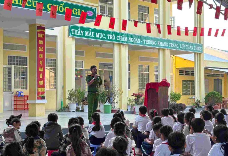 Nhằm nâng cao nhận thức, ý thức chấp hành pháp luật cho học sinh trong lứa tuổi học đường, ngày 02/02, Công an xã Cù Lao Giêng đã tổ chức 02 buổi tuyên truyền pháp luật về trật tự an toàn giao thông; Luật Phòng, chống ma túy; Luật Phòng cháy, chữa cháy và phòng, chống bạo lực học đường tại Trường Trung học cơ sở Nguyễn Thanh Sơn và Trường Trung học cơ sở Trương Công Thận. Các buổi tuyên truyền đã thu hút hơn 2.000 lượt cán bộ, giáo viên và học sinh tham gia.