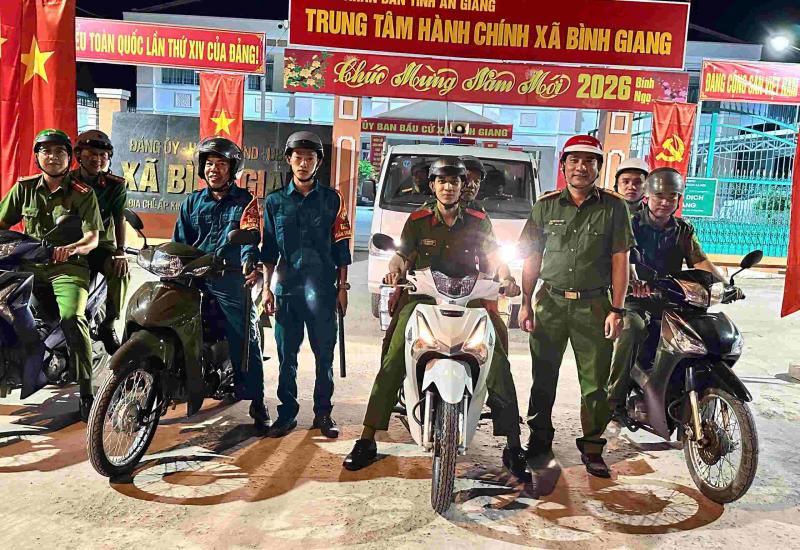 Thực hiện kế hoạch cao điểm bảo đảm an ninh trật tự phục vụ bầu cử đại biểu Quốc hội khóa XVI, đại biểu Hội đồng nhân dân các cấp nhiệm kỳ 2026 – 2031 và bảo đảm an toàn cho Nhân dân vui Xuân, đón Tết Bính Ngọ 2026, Công an xã Bình Giang đã triển khai đồng bộ các biện pháp tuần tra, kiểm soát trên địa bàn.