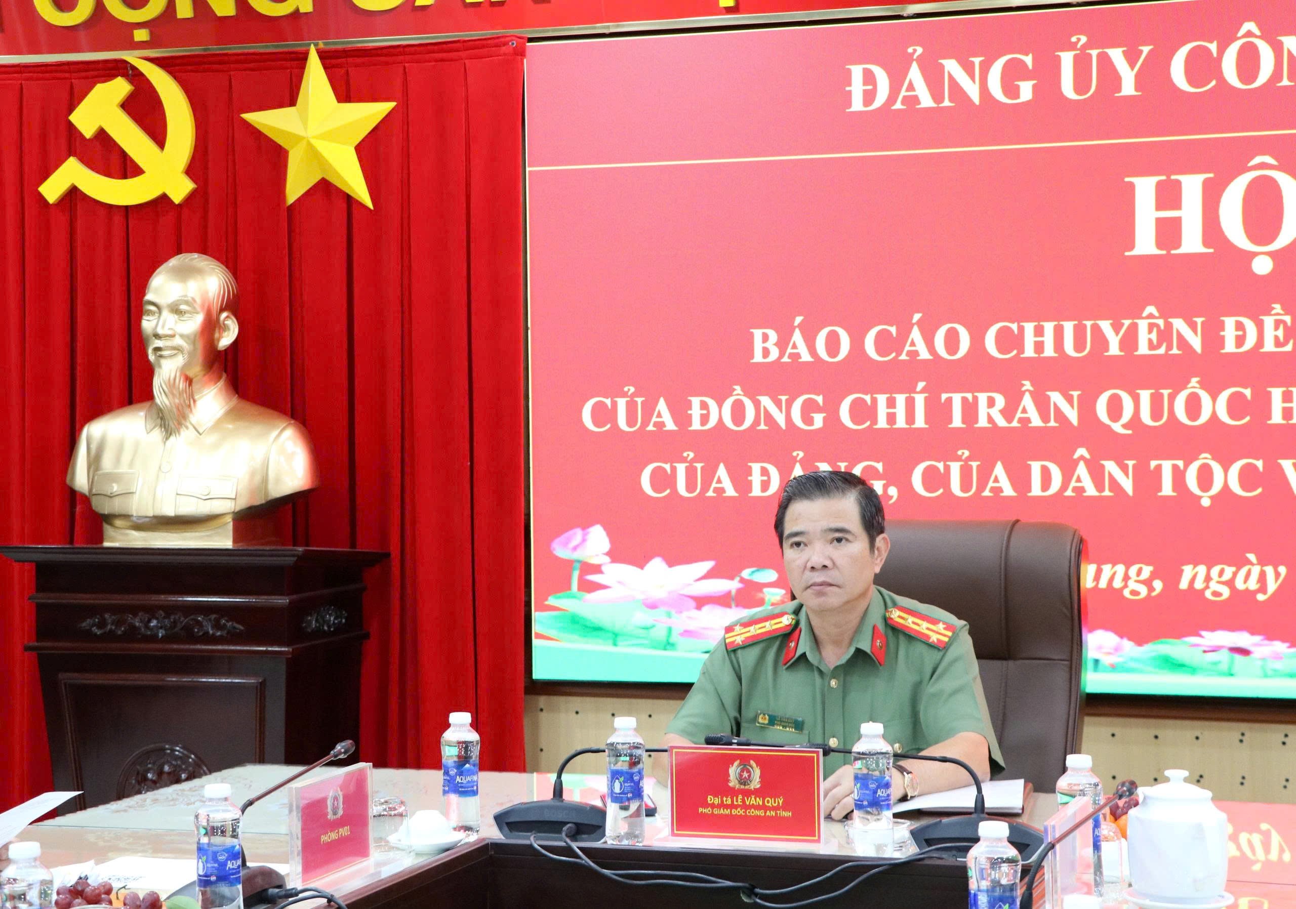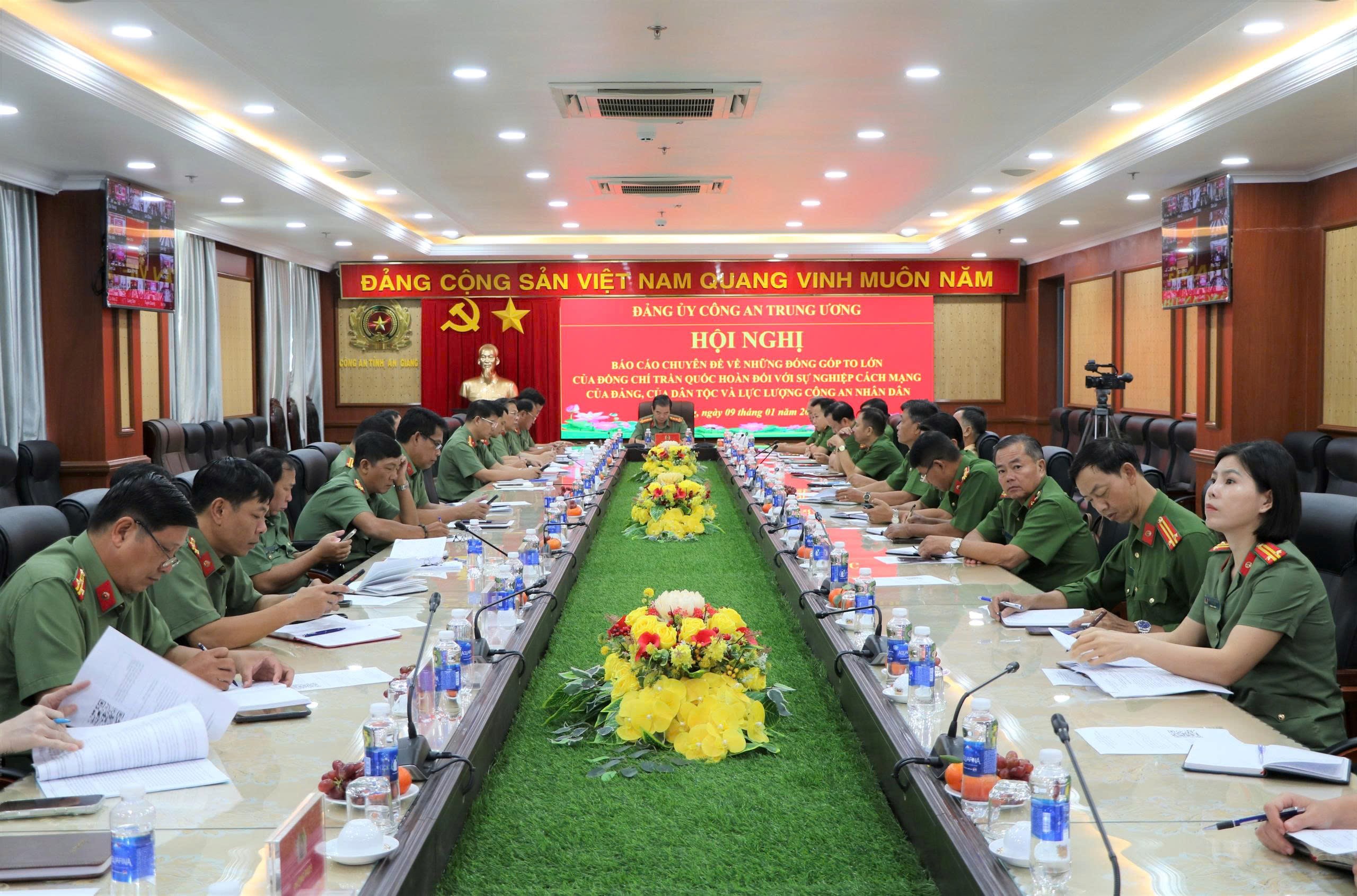 Nhân kỷ niệm 110 năm Ngày sinh đồng chí Trần Quốc Hoàn – lãnh đạo tiền bối tiêu biểu của Đảng và cách mạng Việt Nam (23/01/1916 – 23/01/2026), ngày 09/01/2026, Cục Công tác chính trị, Bộ Công an tổ chức Hội nghị báo cáo chuyên đề nhằm ôn lại cuộc đời hoạt động cách mạng vẻ vang, tôn vinh những cống hiến to lớn, mang dấu ấn lịch sử của đồng chí Trần Quốc Hoàn đối với sự nghiệp của Đảng, của dân tộc và sự hình thành, phát triển của lực lượng Công an nhân dân. Hội nghị được tổ chức theo hình thức trực tiếp kết hợp trực tuyến đến Công an các tỉnh, thành phố trực thuộc Trung ương. Tại điểm cầu Công an tỉnh An Giang, đồng chí Đại tá Lê Văn Quý, Phó Giám đốc Công an tỉnh dự và chủ trì hội nghị; cùng tham dự có lãnh đạo các phòng nghiệp vụ.