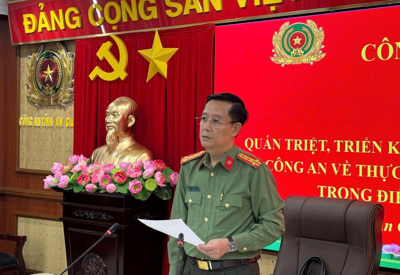 Đại tá Huỳnh Thanh Lâm, Phó Giám đốc Công an tỉnh phát biểu chỉ đạo Hội nghị.