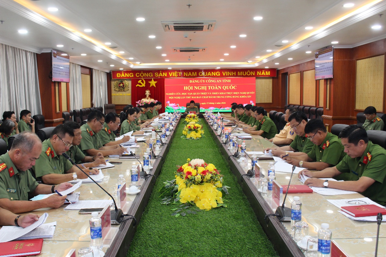 Ngày 13/4, Bộ Chính trị, Ban Bí thư Trung ương Đảng đã chủ trì tổ chức Hội nghị toàn quốc nghiên cứu, học tập, quán triệt và triển khai thực hiện Nghị quyết Hội nghị lần thứ hai Ban Chấp hành Trung ương Đảng khóa XIV. Đồng chí Tổng Bí thư, Chủ tịch nước Tô Lâm dự và chỉ đạo hội nghị. Dự tại điểm cầu trực tuyến Công an tỉnh an giang có Đại tá Lê Phú Thạnh - Tỉnh ủy viên - Phó Bí thư - Phó Giám đốc Công an tỉnh cùng các đồng chí trong Ban Chấp hành Đảng ủy và lãnh đạo các đơn vị nghiệp vụ Công an tỉnh.