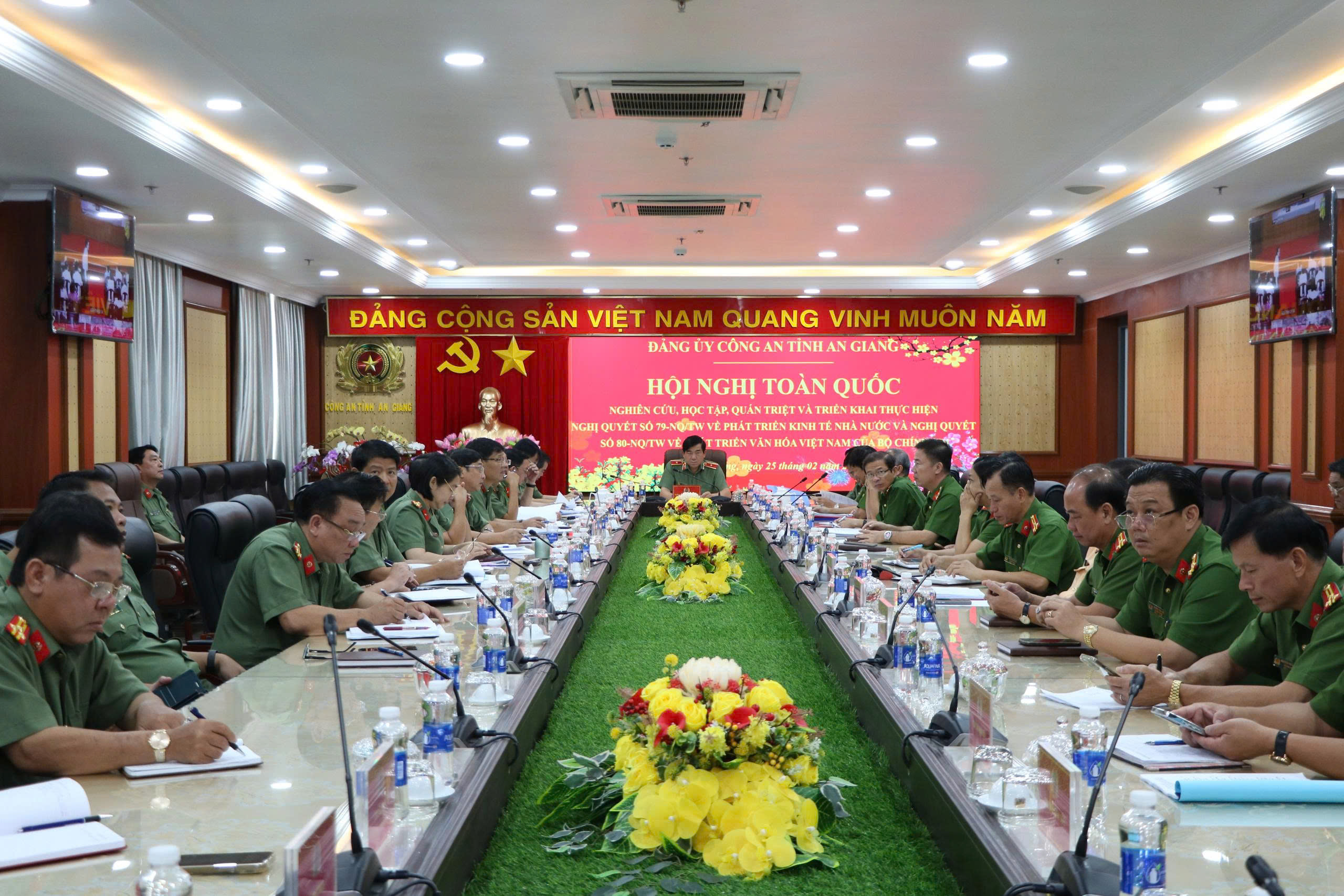 Tại điểm cầu Công an tỉnh An Giang, đồng chí Thiếu tướng Nguyễn Văn Hận, Ủy viên Ban Thường vụ Tỉnh ủy, Bí thư Đảng ủy, Giám đốc Công an tỉnh dự và chủ trì hội nghị; cùng tham dự có các đồng chí trong Ban Thường vụ Đảng ủy, Ban Giám đốc Công an tỉnh; các đồng chí Uỷ viên Ban Chấp hành Đảng bộ Công an tỉnh; các đồng chí Uỷ viên Uỷ ban Kiểm tra Đảng uỷ Công an tỉnh; các đồng chí Bí thư và Phó Bí thư các Chi, đảng bộ cơ sở trực thuộc Đảng uỷ Công an tỉnh.