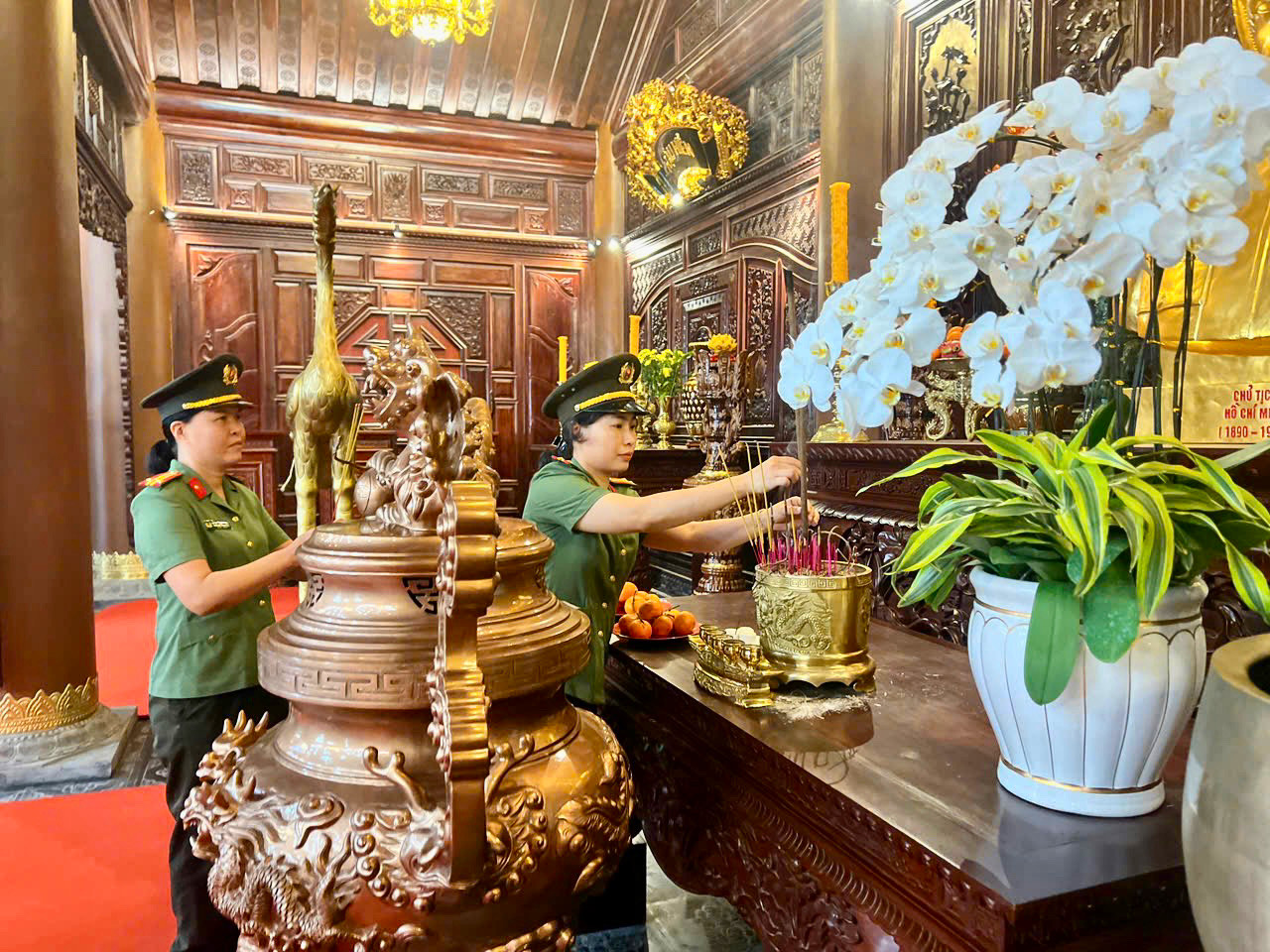 Trong không khí trang nghiêm, nữ cán bộ, hội viên đã thành kính dâng hương, dành phút mặc niệm tưởng nhớ công lao to lớn của các anh hùng liệt sĩ đã hy sinh vì sự nghiệp bảo vệ Tổ quốc, đồng thời báo công lên Bác những kết quả mà Hội phụ nữ đơn vị đã đạt được.