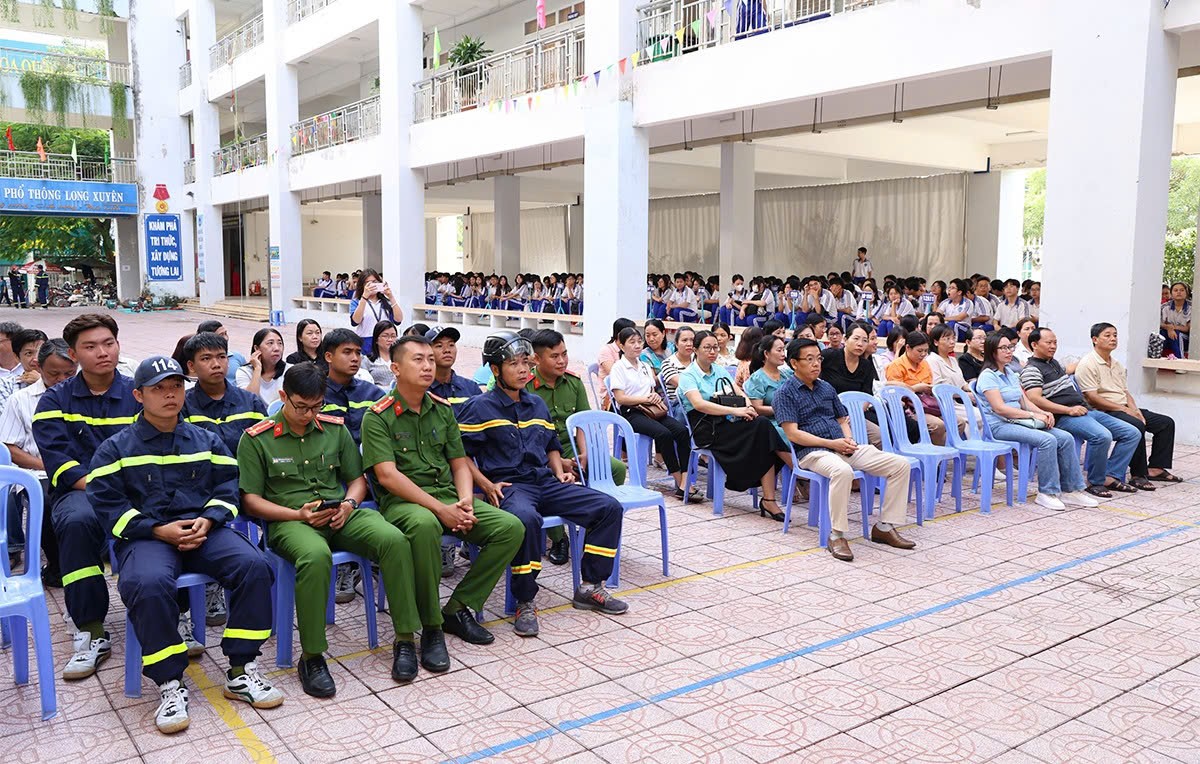 Nhằm lan tỏa tinh thần “Toàn dân tham gia phòng cháy chữa cháy” đến với mỗi giáo viên và học sinh, sáng ngày 11/10/2025, Phòng Cảnh sát PCCC và CNCH Công an tỉnh An Giang tổ chức buổi tuyên truyền, trải nghiệm thực hành chữa cháy cho hơn 500 giáo viên và học sinh Trường THPT Long Xuyên.