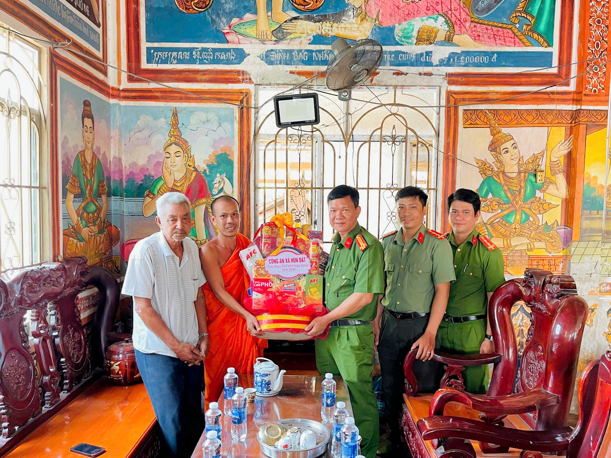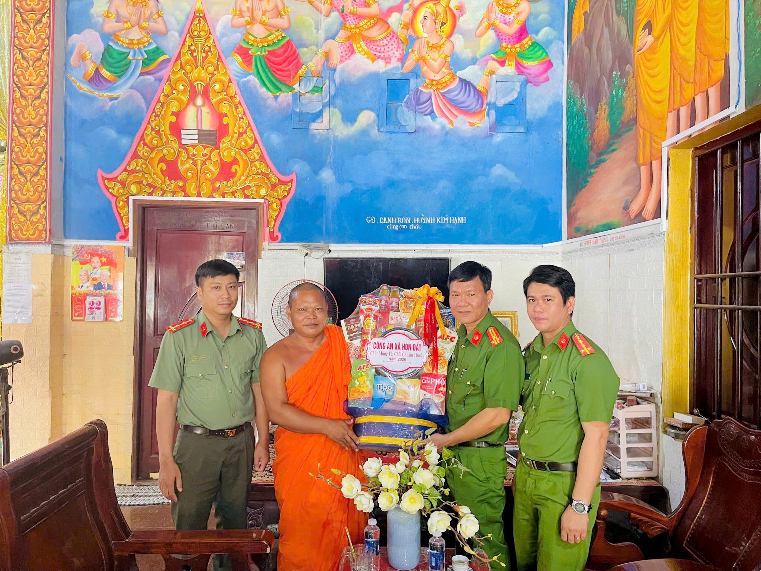 Công an xã Hòn Đất thăm, tặng quà tại các chùa Phật giáo Nam tông trên địa bàn