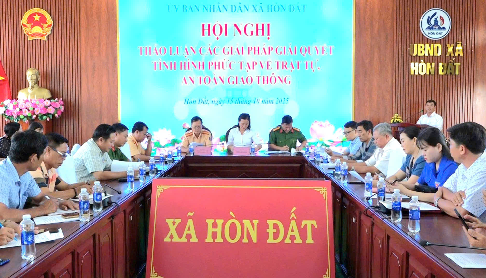 Ngày 15/10, ‎Ủy ban nhân dân xã Hòn Đất, tỉnh An Giang đã tổ chức hội nghị thảo luận các giải pháp giải quyết tình hình phức tạp về trật tự, an toàn giao thông trên tuyến Quốc lộ 80, tuyến ĐT 969, tuyến ĐT 969B thuộc địa bàn xã Hòn Đất. Hội nghị do đồng chí Phạm Thu Thuỷ - Phó Bí thư Đảng uỷ, Chủ tịch Uỷ ban nhân dân xã Hòn Đất chủ trì. Đến dự có đồng chí Thượng tá Hoàng Văn Tài – Phó Trưởng Phòng Cảnh sát giao thông Công an tỉnh An Giang, đồng chí Thượng tá Trịnh Tiến Nam – Trưởng Công an xã Hòn Đất cùng với Trưởng ban lãnh đạo 25 ấp trên địa bàn xã.
