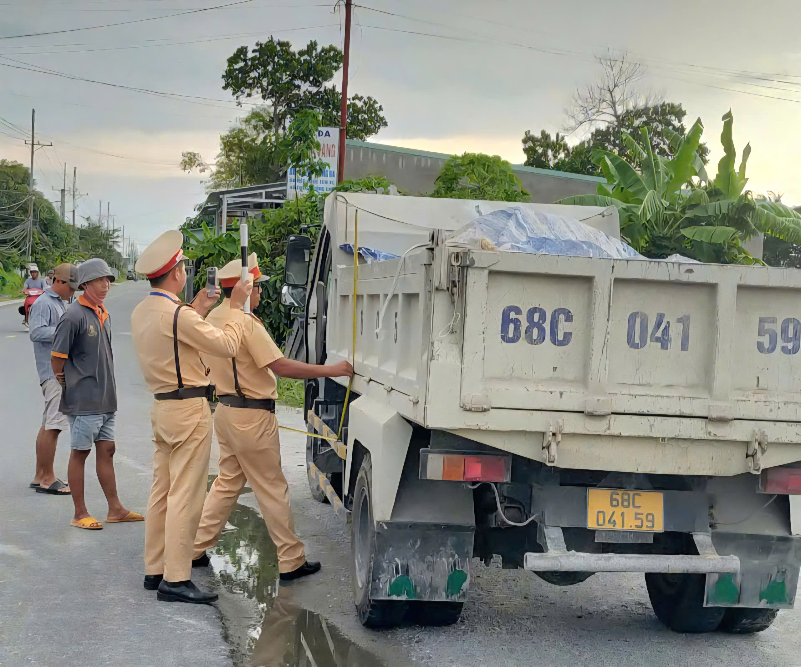Lực lượng Cảnh sát giao thông tổ chức tuần tra, xử lý các phương tiện vi phạm giao thông trên tuyến đường 969, 969B thuộc địa phận xã Hòn Đất