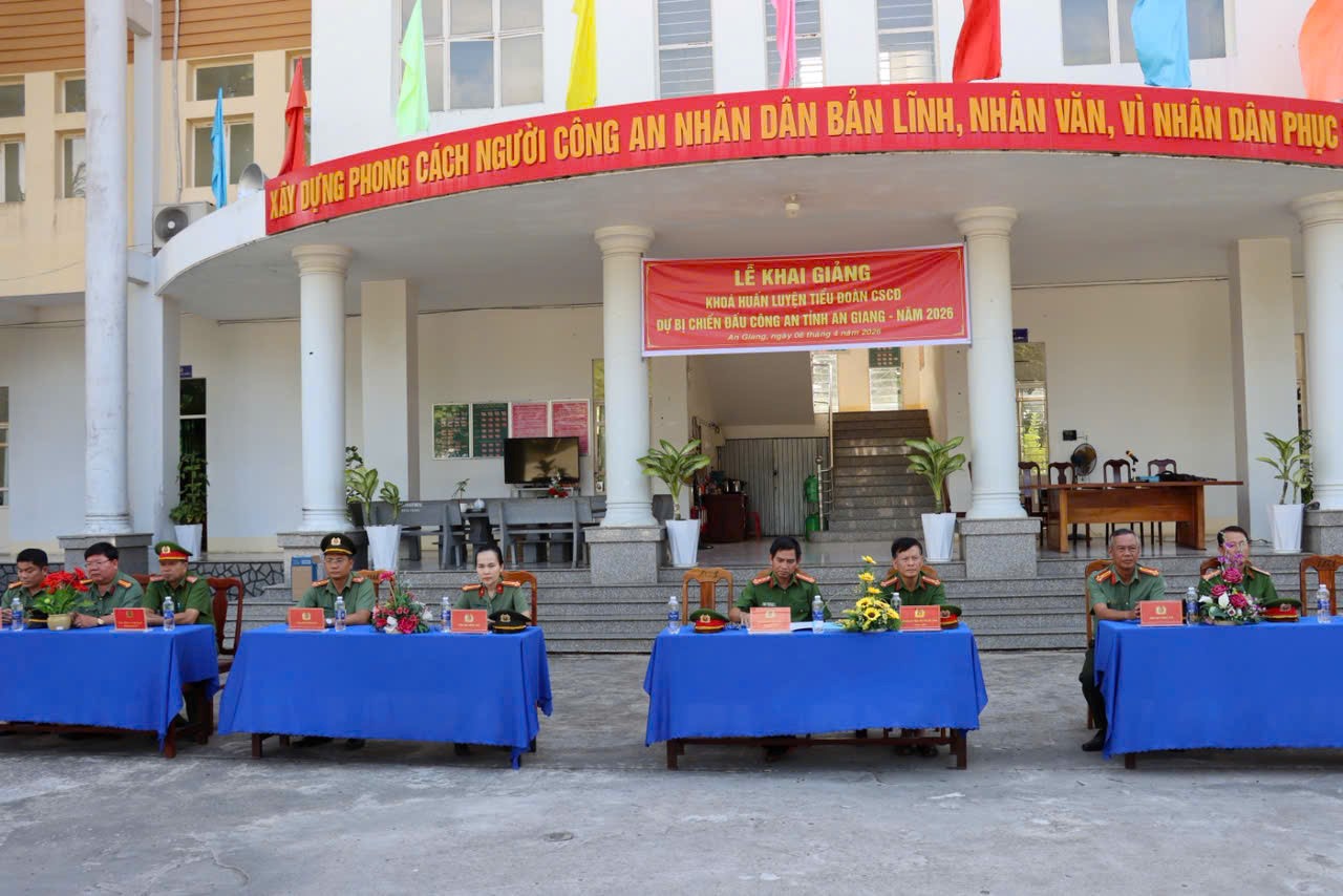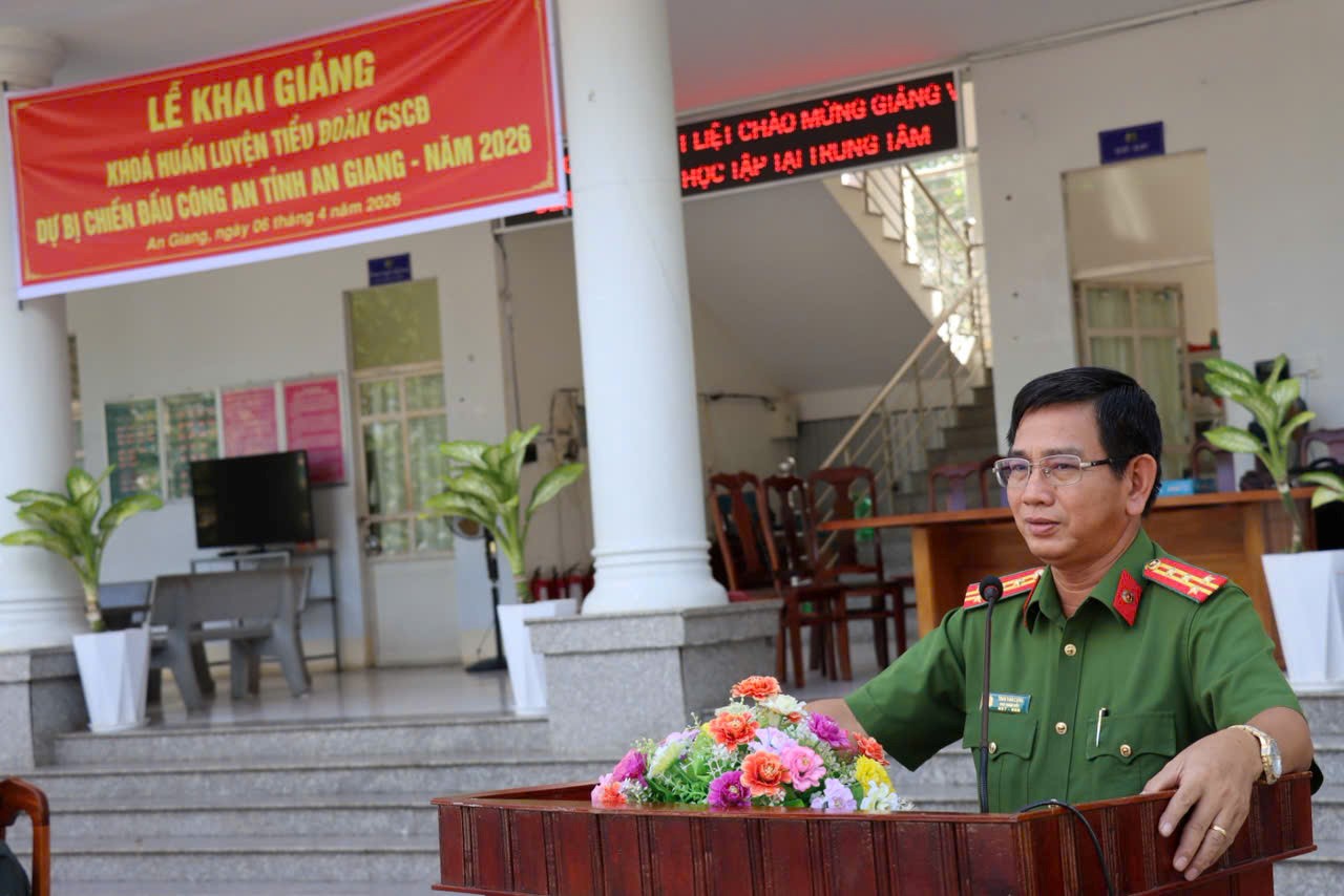 Sáng ngày 06/4/2026, Công an tỉnh An Giang tổ chức Lễ khai giảng khoá huấn luyện Tiểu đoàn Cảnh sát cơ động dự bị chiến đấu đợt 1 năm 2026. Đại tá Trần Văn Cung, Phó Giám đốc Công an tỉnh dự và phát biểu tại buổi Lễ.