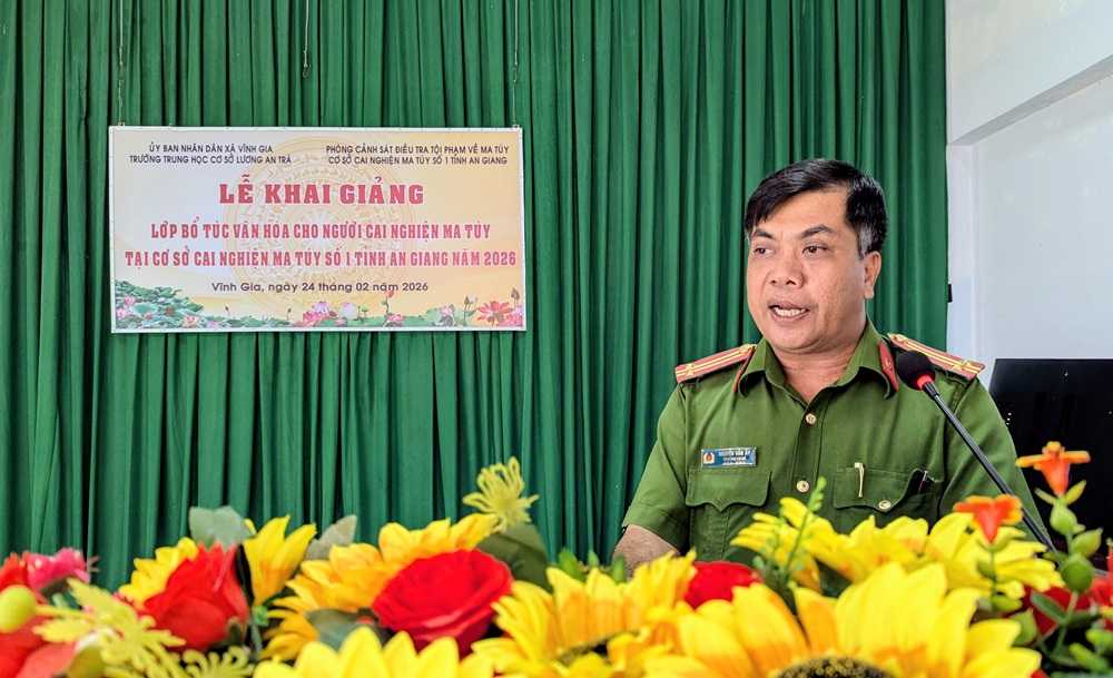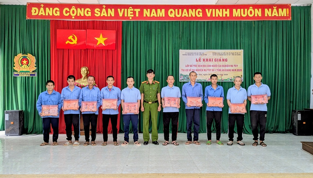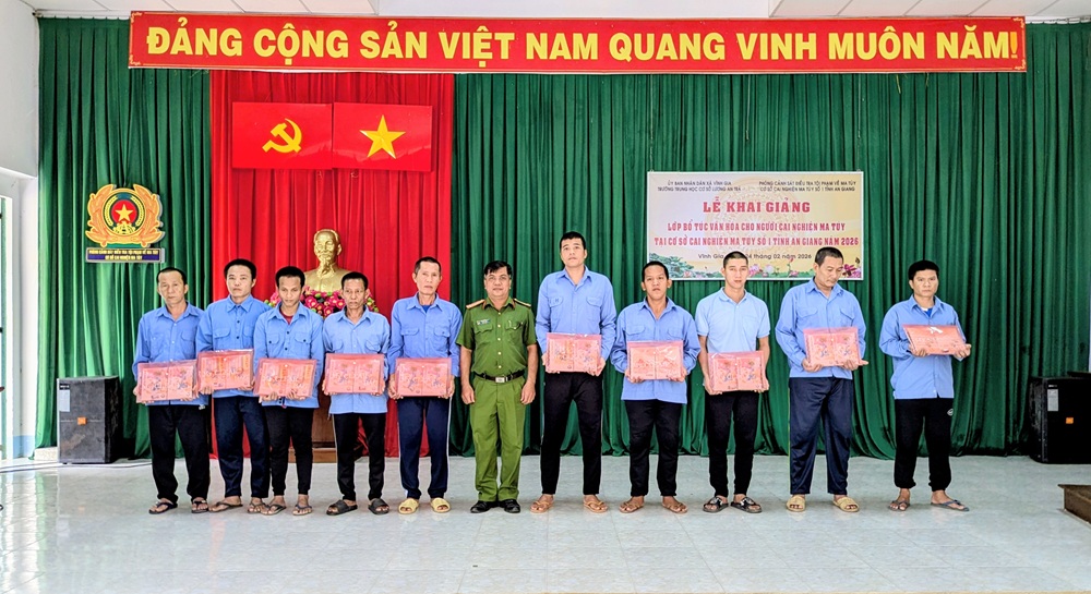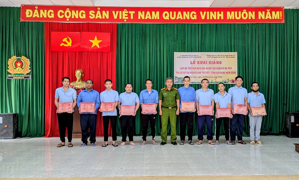 Ngày 24/02/2026, Cơ sở cai nghiện ma túy số 1 tỉnh An Giang phối hợp Trường Trung học cơ sở Lương An Trà tổ chức Lễ khai giảng lớp bổ túc văn hóa cho 30 học viên đang cai nghiện ma túy tại Cơ sở.
