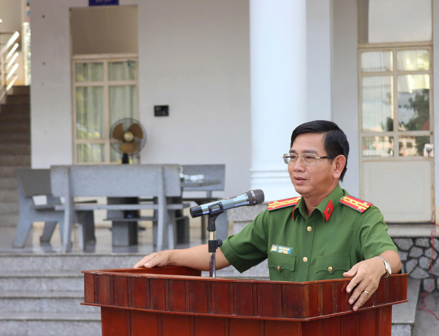 Đại tá Trần Văn Cung, Phó Giám đốc Công an tỉnh phát biễu tại buỗi lễ