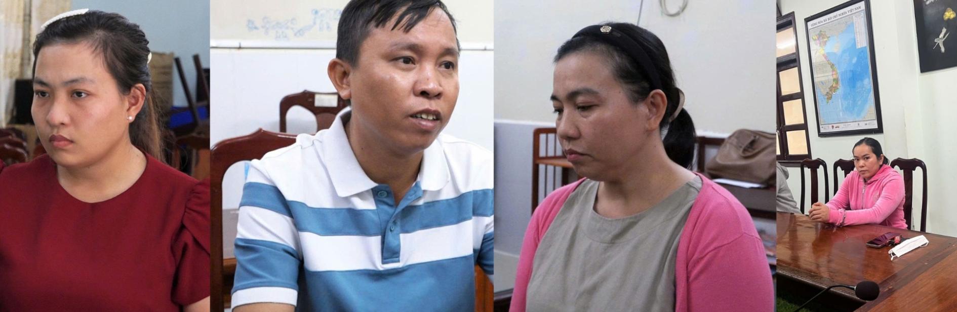 Các bị cáo Nguyễn Thị Xuân An, Phạm Quang Châu, Nguyễn Thị Xuân Tuyết, Nguyễn Nhật Phương tại cơ quan Công an