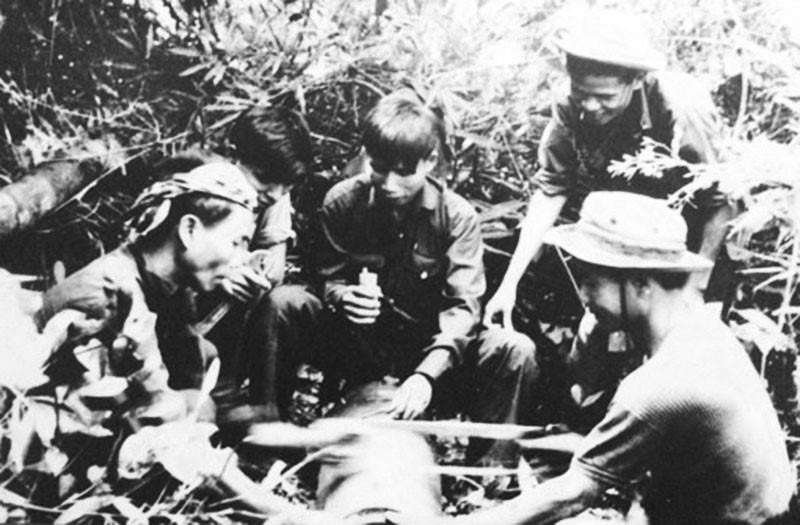 Những chiến sĩ An ninh vũ trang lấy thuốc nổ chế tạo vũ khí đánh địch (Tư liệu TTX.VN)