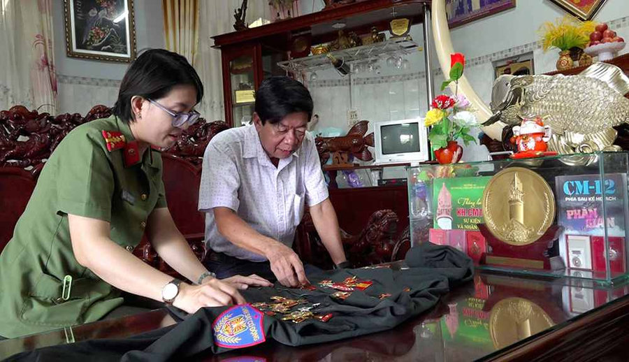 Đón chúng tôi bằng nụ cười rạng rỡ, ông kể rành mạch cho chúng tôi nghe từng trận đánh, tên của từng đồng chí cùng ông vào sanh ra tử, những địa danh mà ông cùng đồng đội gắn bó cả một thời thanh xuân oanh liệt,…mỗi lời kể, mỗi câu chuyện như chở theo cả niềm tự hào về những tháng ngày vàng son, gian khổ nhưng hào hùng. Dường như những ký ức về chiến tranh và những năm tháng làm công tác an ninh khiến ông hiểu rõ hơn giá trị của sự hy sinh. Đó là những ngày tháng cống hiến không ngừng nghỉ, không có tiếng vỗ tay hay sự công nhận, chỉ có những chiến công thầm lặng và đôi lúc có những hy sinh không phải lúc nào cũng được nhớ mặt, đặt tên!
