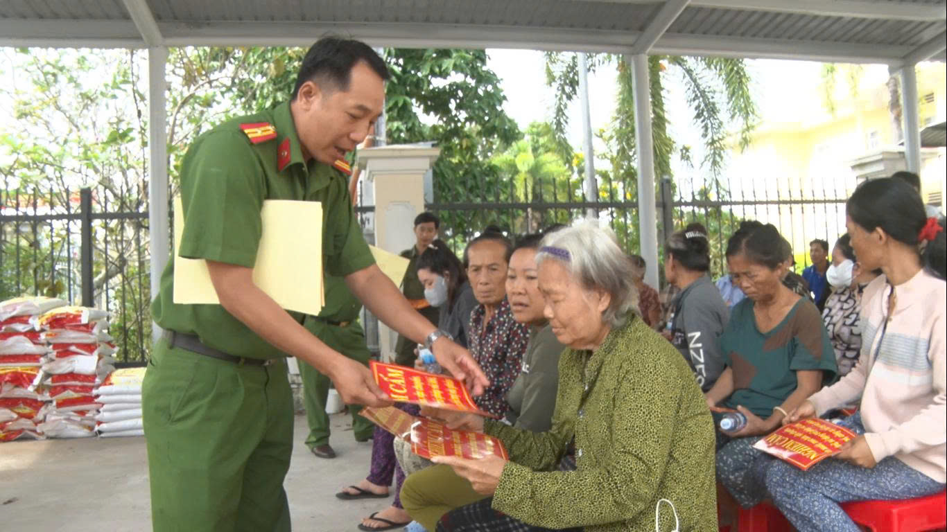 Song song với công tác tuyên truyền, chương trình đã trao tặng 100 phần quà, mỗi phần gồm 10kg gạo, cho các hộ dân có hoàn cảnh khó khăn và lực lượng bảo vệ an ninh trật tự tại cơ sở, với tổng trị giá hơn 20 triệu đồng do mạnh thường quân Phan Huỳnh Anh Khoa hỗ trợ. Những phần quà mang theo thông điệp sẻ chia, tiếp thêm niềm tin và sự gắn bó giữa lực lượng Công an với Nhân dân.