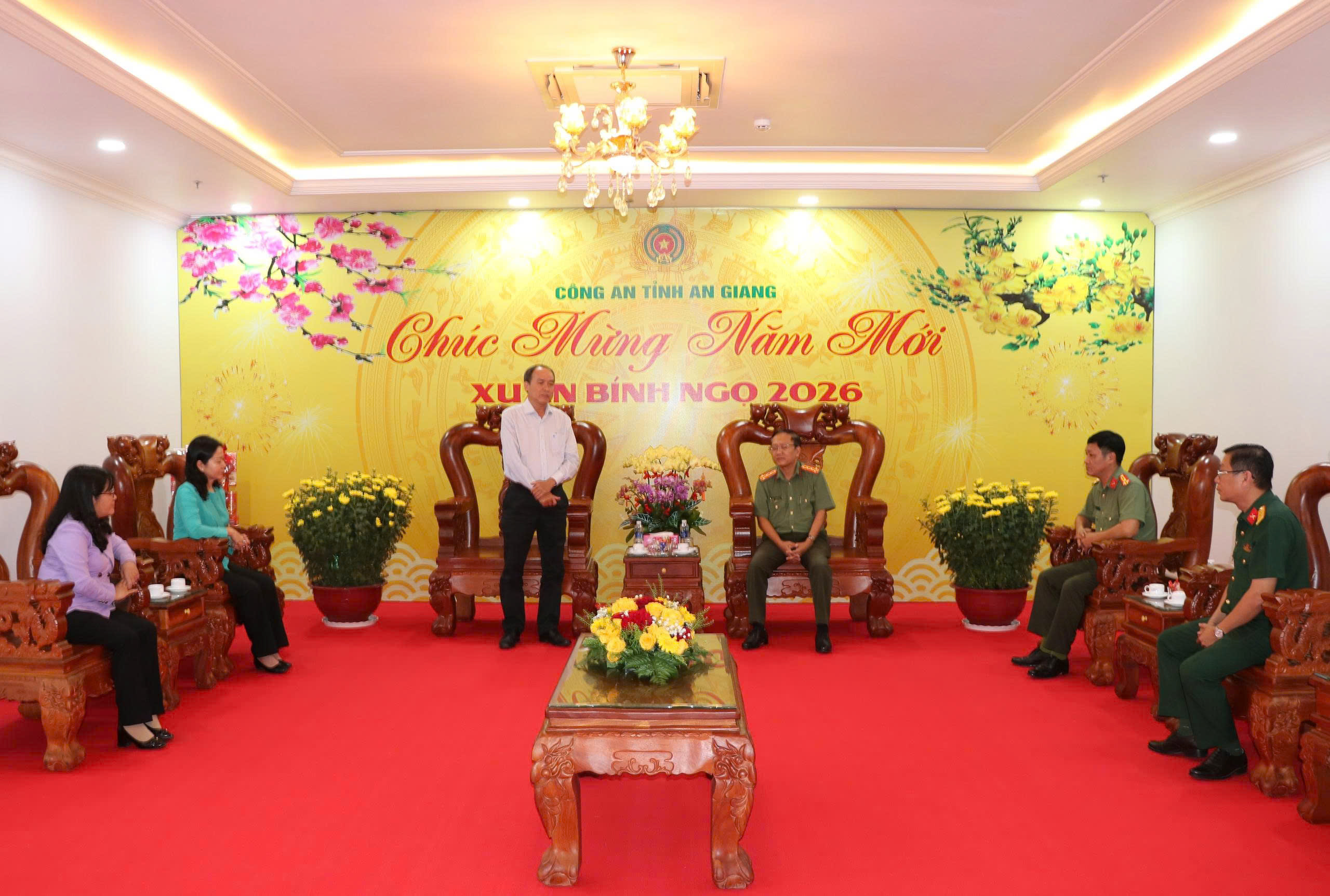 Ngày 6/2/2026, đồng chí Đại tá Huỳnh Thanh Lâm – Phó Giám đốc Công an tỉnh An Giang đã thân mật tiếp Đoàn Đảng uỷ – UBND phường Long Xuyên đến thăm, chúc Tết và tặng quà Công an tỉnh An Giang nhân dịp Tết Nguyên đán Bính Ngọ năm 2026.