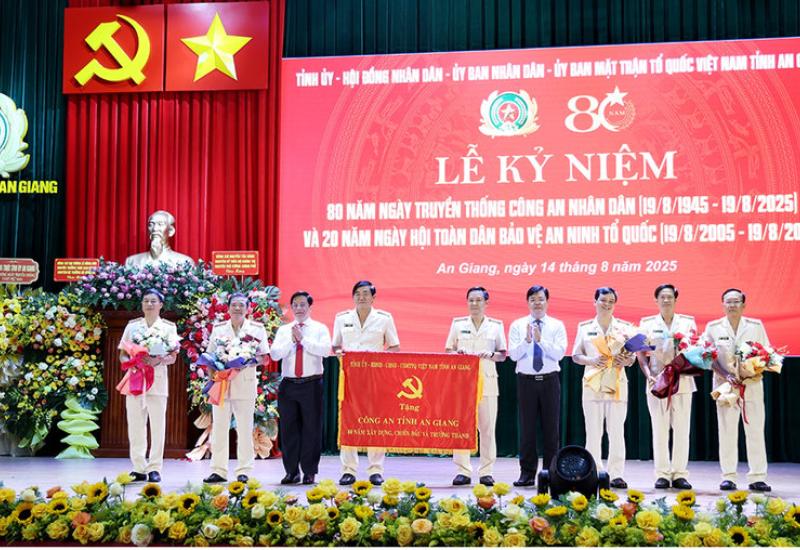 Chiều 14/8/2025, Tỉnh ủy, HĐND, UBND, Ủy ban MTTQ Việt Nam tỉnh An Giang long trọng tổ chức Lễ kỷ niệm 80 năm Ngày truyền thống CAND (19/8/1945 - 19/8/2025); 20 năm Ngày hội toàn dân bảo vệ an ninh Tổ quốc (19/8/2005 - 19/8/2025).