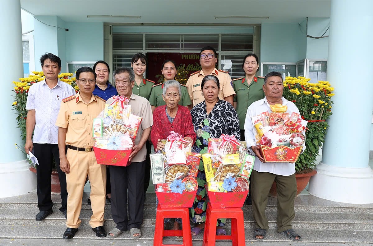 Sáng cùng ngày, Đoàn viên Trạm Cảnh sát đường thuỷ Vàm Nao phối hợp cùng các lực lượng tổ chức thăm, tặng 10 phần quà Tết, mỗi phần quà trị giá 500.000đ cho người dân có hoàn cảnh khó khăn trên địa bàn phường Mỹ Thới.