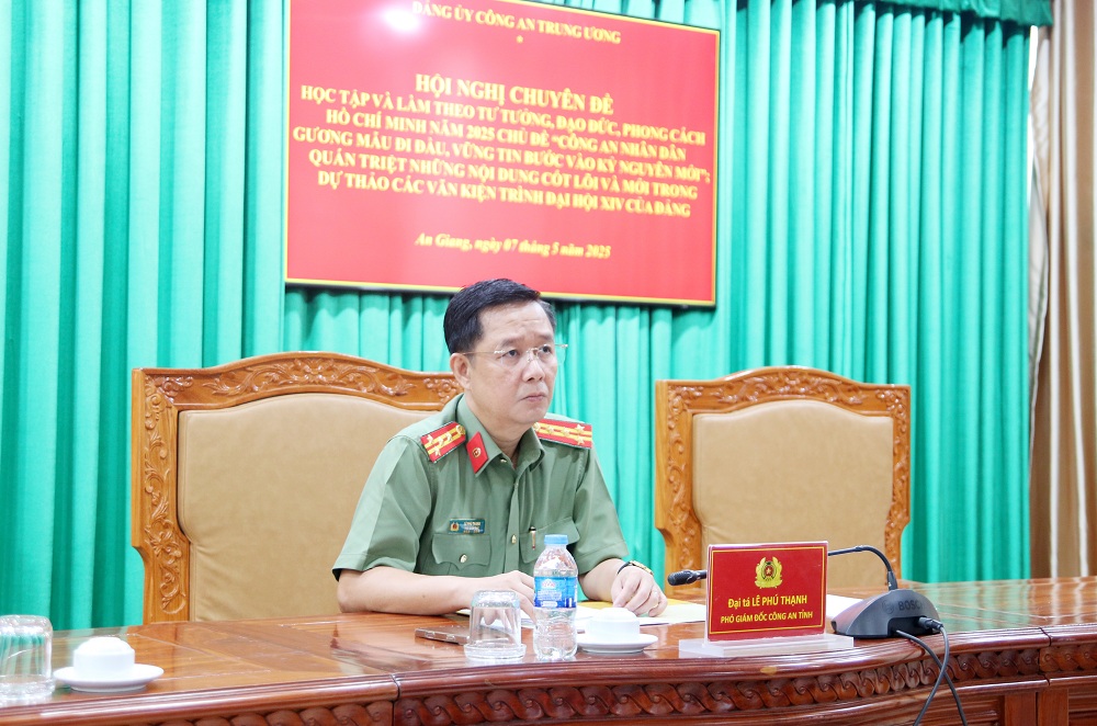Hội nghị được tổ chức trực tiếp tại Hội trường Bộ Công an (Hà Nội) trực tuyến đến điểm cầu Công an 63 tỉnh, thành phố trực thuộc Trung ương. Tại điểm cầu Công an tỉnh An Giang có đồng chí Đại tá Lê Phú Thạnh, Phó Bí thư Đảng ủy, Phó Giám đốc Công an tỉnh cùng Thủ trưởng các đơn vị thuộc Công an tỉnh đến dự.