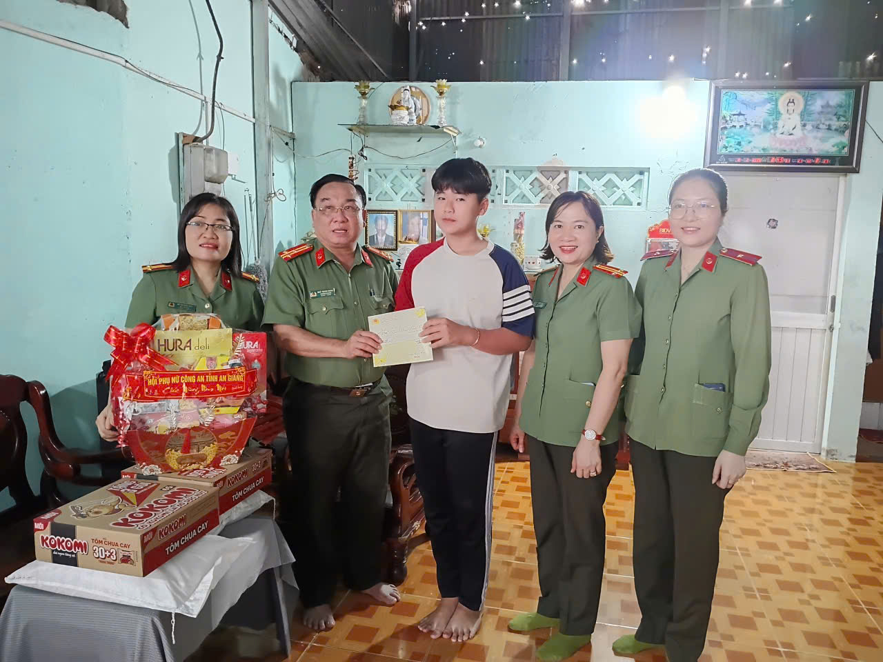 Nhằm thiết thực hưởng ứng phong trào thi đua “Cả nước chung tay vì người nghèo, không để ai bị bỏ lại phía sau” và triển khai hiệu quả mô hình “Ba nhất”, ngày 08/02, phòng Hậu cần Công an tỉnh An Giang đã tổ chức đoàn đến thăm, chúc Tết và trao quà cho các em nhỏ có hoàn cảnh đặc biệt khó khăn trên địa bàn phường Long Xuyên và xã Vĩnh Hanh, tỉnh An Giang.