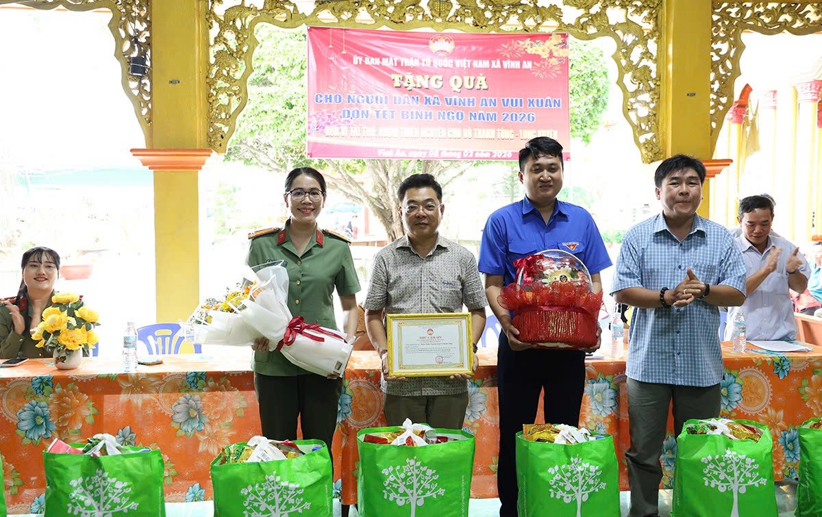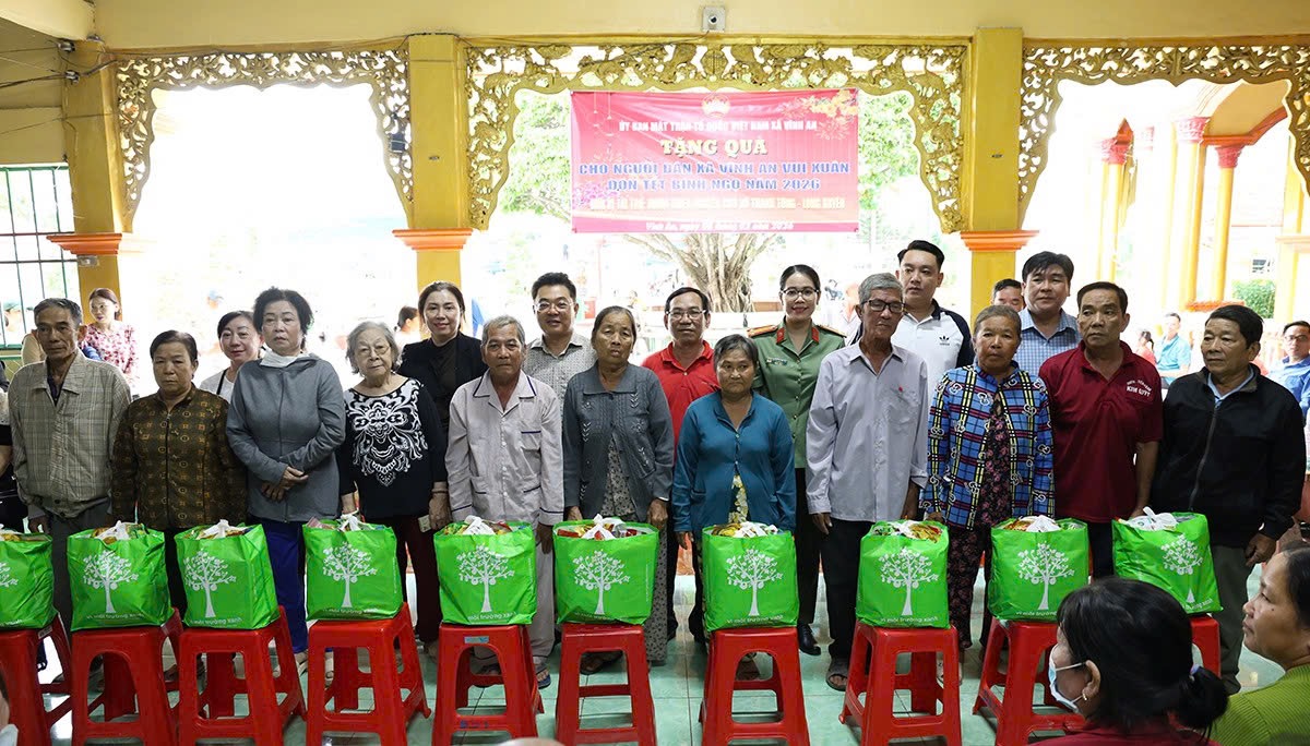 Nhân dịp Tết Nguyên đán Bính Ngọ năm 2026, sáng ngày 08/2, Ban Phụ nữ Công an tỉnh An Giang phối hợp cùng nhóm thiện nguyện của thầy Võ Thanh Tùng, hiệu trưởng Trường tiểu học Lê Quý Đôn; phường đoàn Bình Đức và Uỷ ban mặt trận Tổ quốc Việt Nam xã Vĩnh An, tổ chức chương trình trao tặng quà Tết cho người dân có hoàn cảnh khó khăn trên địa bàn xã.