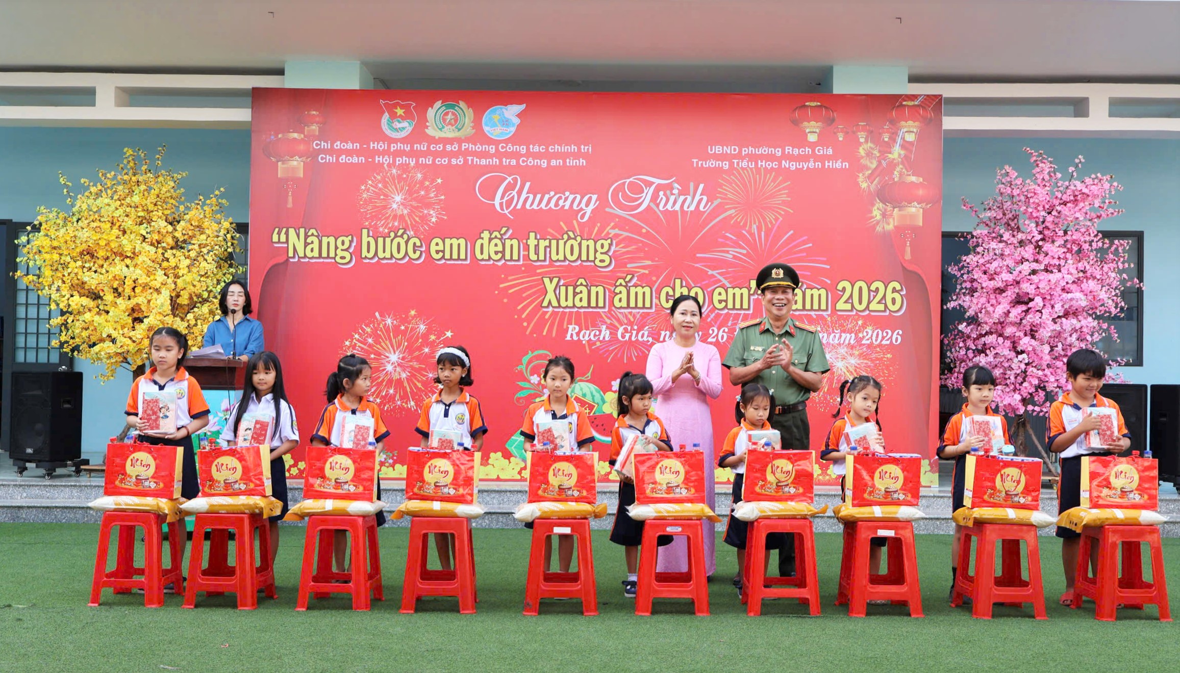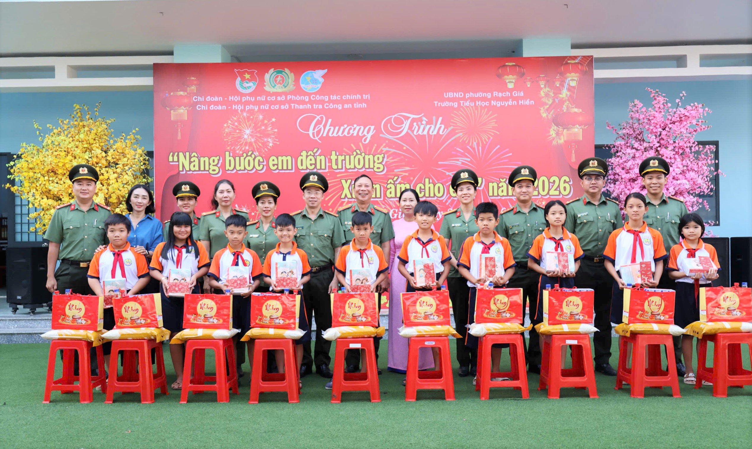 Chương trình được tổ chức tại Trường Tiểu học Nguyễn Hiền, phường Rạch Giá, tỉnh An Giang. Đoàn công tác do đồng chí Thượng tá Cù An Khôi, Phó Trưởng phòng Công tác chính trị làm Trưởng đoàn đã trao tặng 30 phần quà Tết ý nghĩa, gồm nhu yếu phẩm, gạo, bánh Tết, tập học sinh và bao lì xì, với tổng trị giá hơn 12 triệu đồng. Những phần quà tuy không lớn nhưng mang ý nghĩa thiết thực, góp phần động viên tinh thần, tiếp thêm nghị lực để các em vươn lên trong học tập và cuộc sống.