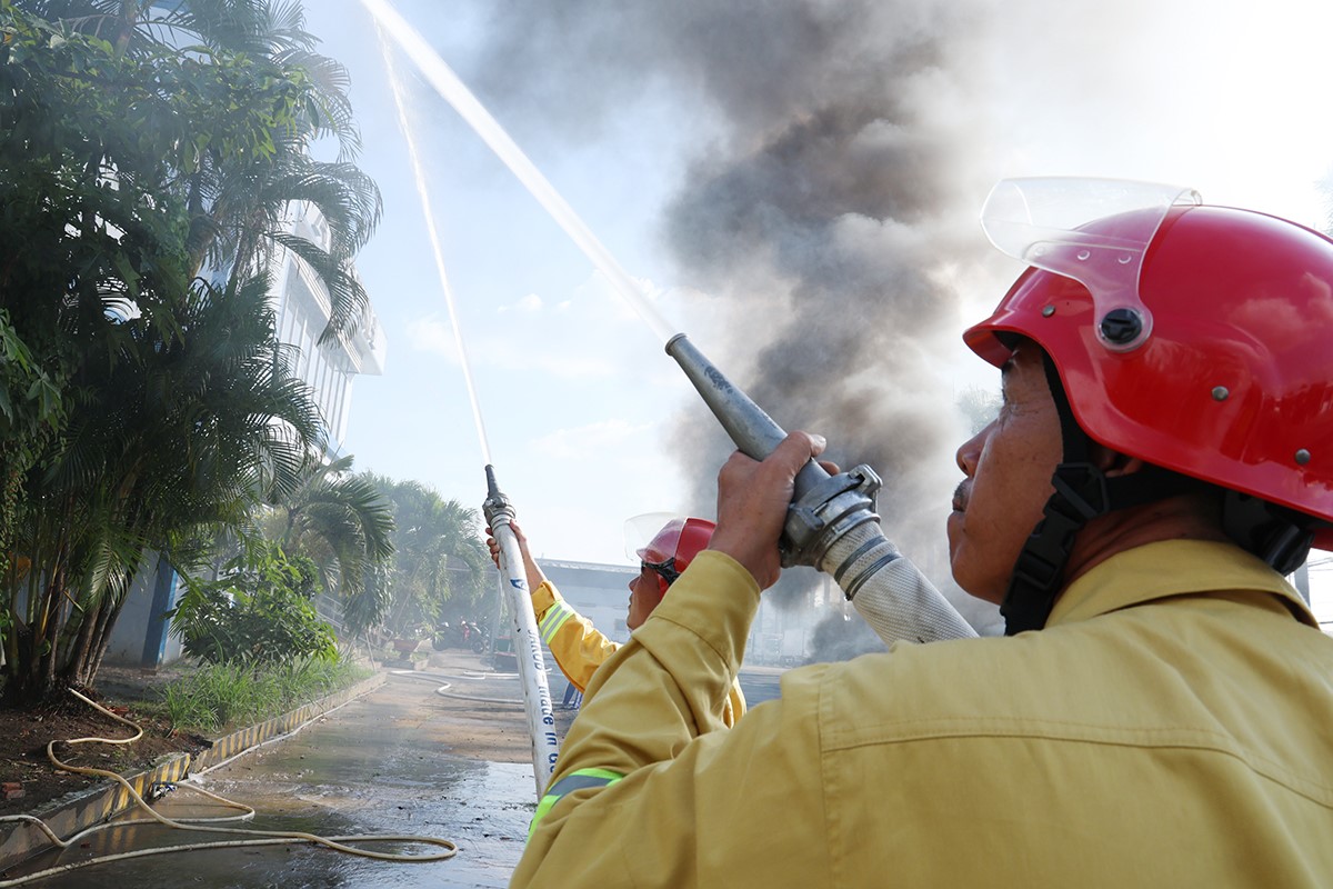 Qua buổi diễn tập nhằm kiểm tra, đánh giá chất lượng phương tiện, lực lượng chữa cháy tại chỗ, cũng như công tác phối hợp với lực lượng chữa cháy chuyên nghiệp khi có sự cố về cháy nổ xảy ra.