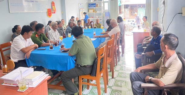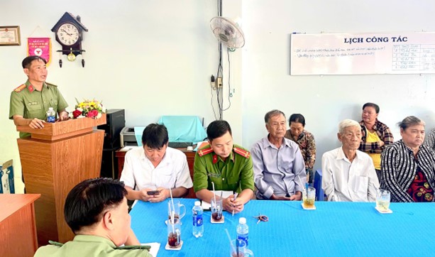 Báo cáo viên Phòng Tham mưu Công an tỉnh tuyên truyền pháp luật tại ấp Mỹ Khánh 2,