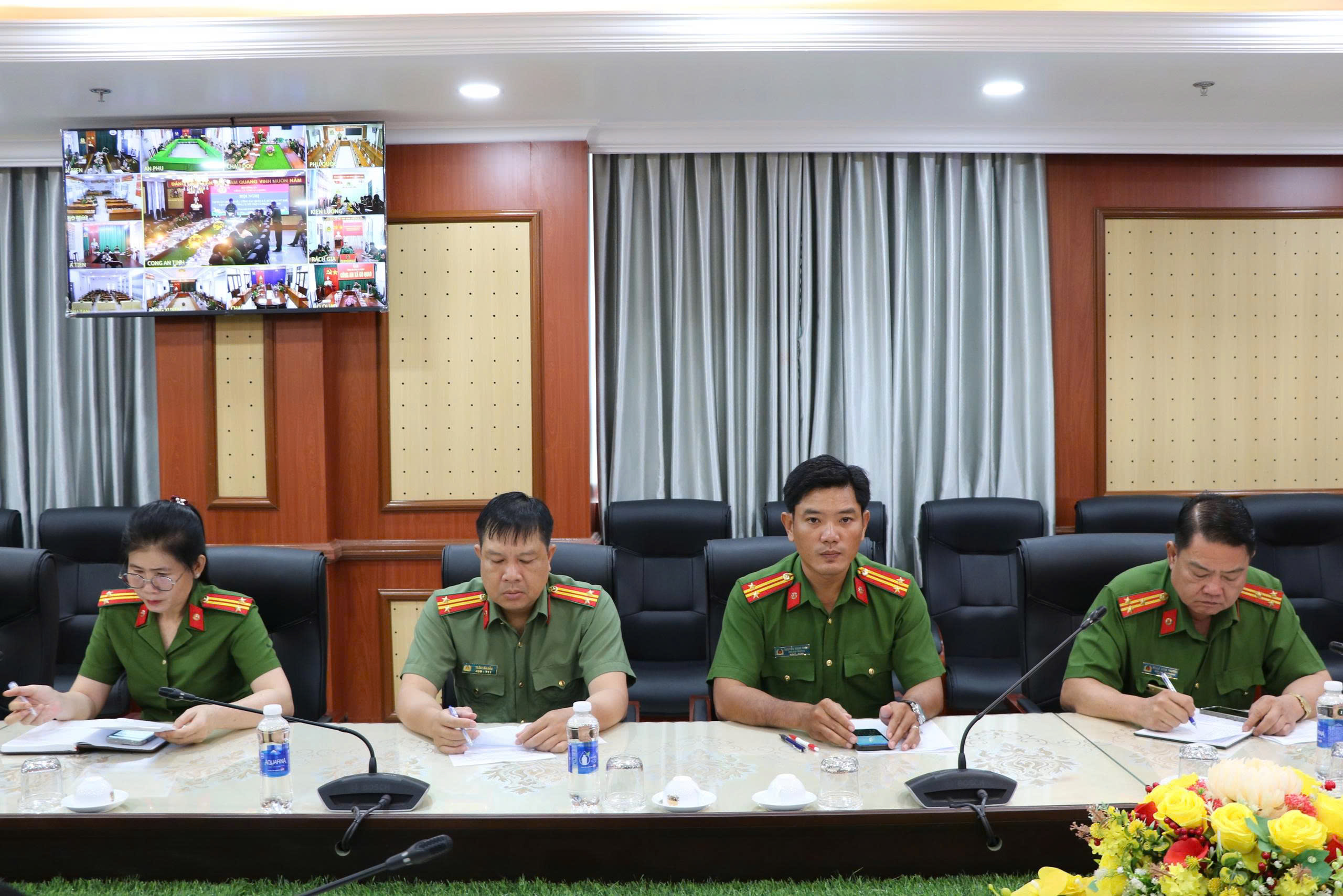Tại điểm cầu Công an tỉnh An Giang, đồng chí Đại tá Bùi Tấn Ân – Phó Giám đốc Công an tỉnh dự và chủ trì Hội nghị. Cùng tham dự có lãnh đạo các phòng nghiệp vụ, chỉ huy các đội chuyên môn, cán bộ trực tiếp phụ trách công tác quản lý vũ khí, vật liệu nổ, công cụ hỗ trợ và pháo; cùng đại diện lãnh đạo Công an các đơn vị, địa phương trong toàn tỉnh.