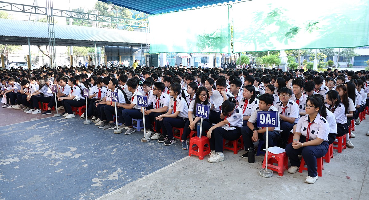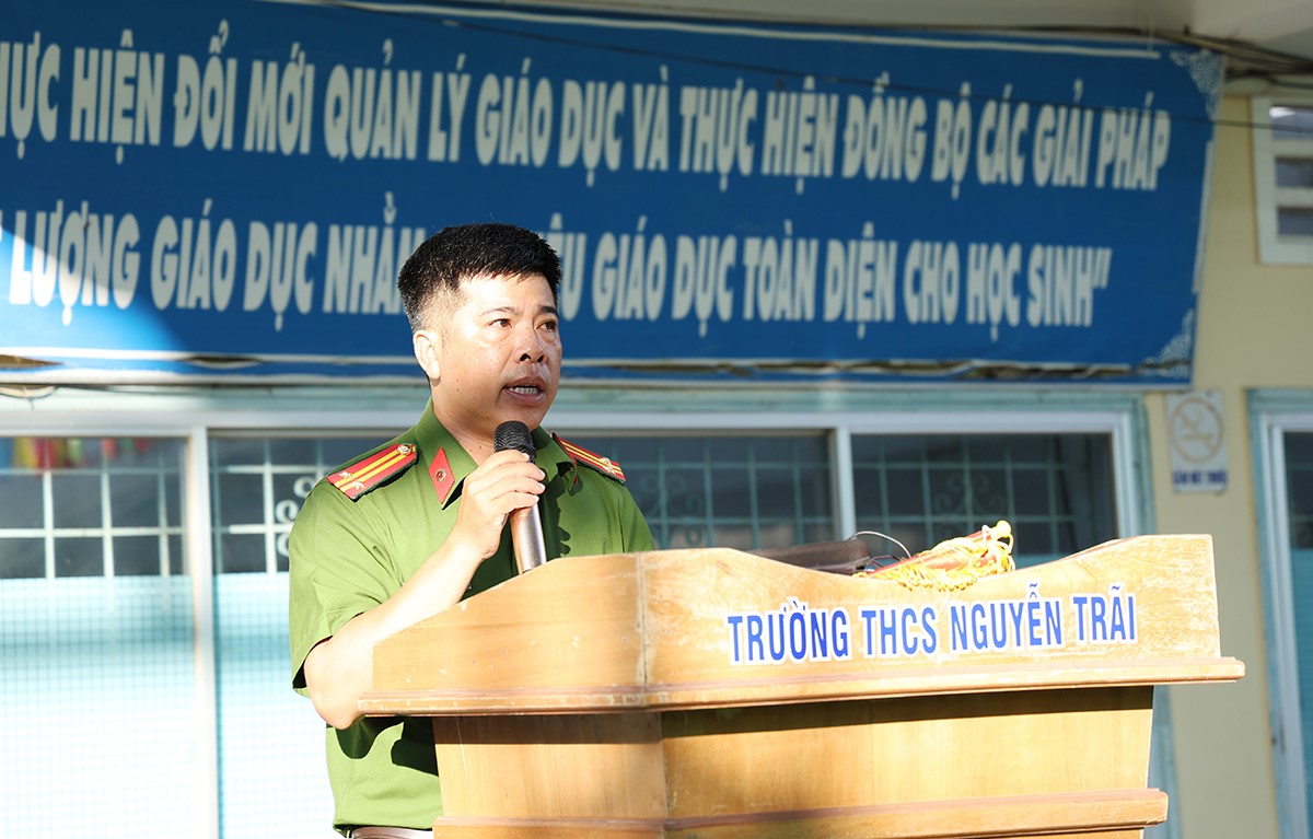 ‎Nhằm nâng cao nhận thức cho các em học sinh những quy định của pháp luật về trật tự an toàn giao thông, cũng như phương thức, thủ đoạn của các loại tội phạm và tệ nạn xã hội. Sáng 30/3/2026, Công an phường Long Xuyên phối hợp với Ban Giám hiệu trường Trung học cơ sở Nguyễn Trãi tổ chức buổi tuyên truyền pháp luật về an toàn giao thông, phòng ngừa các loại tội phạm xâm hại tình dục trẻ em, bạo lực học đường, ma túy và mua bán người. Buổi tuyên truyền thu hút sự tham gia của trên 1.000 cán bộ, giáo viên và học sinh.