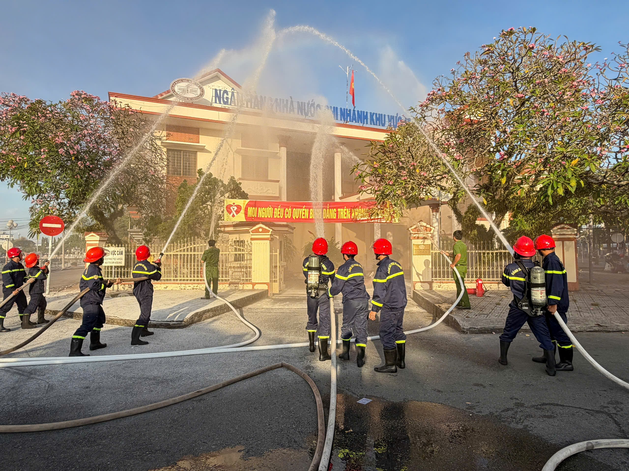 ‎Ngày 21/12/2025, Phòng Cảnh sát phòng cháy, chữa cháy và cứu nạn, cứu hộ (PCCC và CNCH) đã phối hợp với Ngân hàng Nhà nước chi nhánh Khu vực 15 tổ chức thực tập phương án chữa cháy và cứu nạn, cứu hộ với sự tham gia của nhiều lực lượng. Hoạt động nhằm nâng cao khả năng phối hợp, chủ động ứng phó với các tình huống khẩn cấp, qua đó bảo đảm an toàn tính mạng cho cán bộ, người lao động và tài sản của đơn vị.