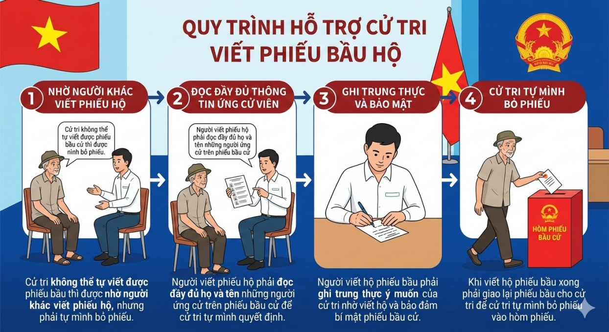 Theo Hội đồng bầu cử Quốc gia, trường hợp cử tri được nhờ người khác viết hộ phiếu, bỏ hộ phiếu bầu cử được quy định như sau: