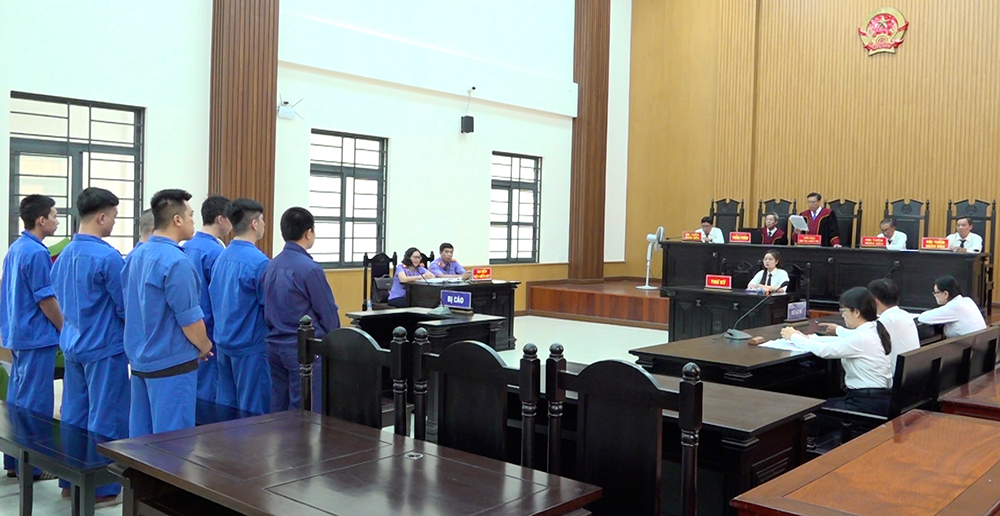 Sau một ngày xét xử sơ thẩm, chiều 28/3, Toà án nhân dân tỉnh An Giang tuyên phạt các bị cáo: Trần Quốc Trương (SN:1998), 19 năm tù; Huỳnh Đức Huy (SN:2001), 17 năm tù; Bùi Thanh Phong (SN:1979), 15 năm tù; Lê Vũ Luân (SN:1999); Lê Chí Tâm (SN:1997, cùng trú thị xã Tịnh Biên, tỉnh An Giang) mỗi bị cáo 7 năm tù; Nguyễn Thành Tính (SN:1988), 11 năm tù và Huỳnh Bé Sang (SN:1995, cùng trú thị xã Tân Châu, tỉnh An Giang), 9 năm tù cùng về tội “Mua bán trái phép chất ma túy”.