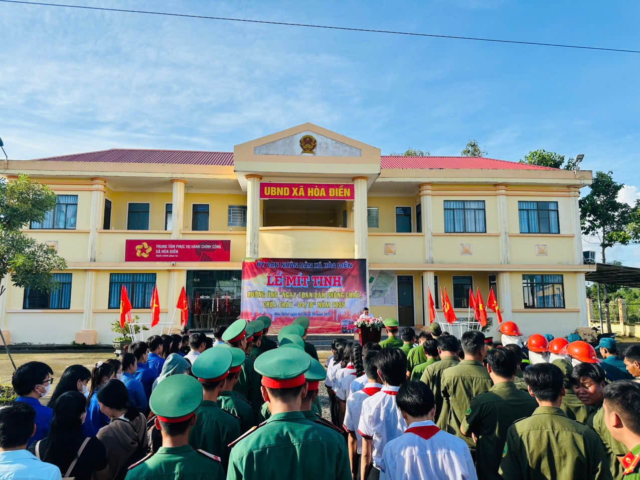 Song song với việc giải quyết thủ tục hành chính, lực lượng Công an xã Hòa Điền còn đẩy mạnh công tác tuyên truyền, phổ biến, giáo dục pháp luật, góp phần nâng cao ý thức chấp hành pháp luật của người dân. Công an xã cũng tích cực vận động nhân dân tham gia phong trào Toàn dân bảo vệ an ninh Tổ quốc, chủ động tố giác tội phạm, tham gia giữ gìn trật tự an toàn xã hội, xây dựng thế trận an ninh nhân dân vững chắc. Những hoạt động này đã góp phần tạo môi trường an toàn, ổn định, phục vụ hiệu quả cho phát triển kinh tế - xã hội tại địa phương.