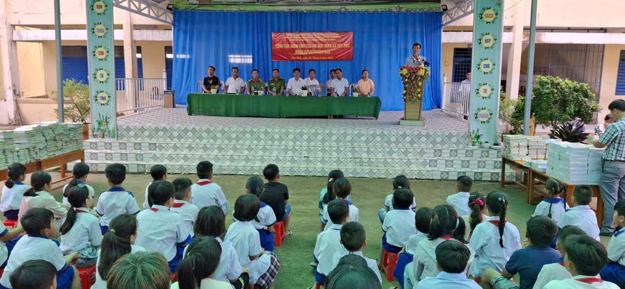 Đoàn đã trực tiếp đến Trường Tiểu học Ba Chúc (xã Ba Chúc) và Trường tiểu học An Bình (xã Tây Phú) để trao tặng 4.000 quyển tập, 370 bộ sách giáo khoa, 30 bộ áo dài cho giáo viên và 50 bộ đồng phục cho học sinh với tổng trị giá khoảng 70 triệu đồng. Đây là hoạt động có ý nghĩa thiết thực, thể hiện tinh thần tương thân, tương ái và gắn kết chặt chẽ mối quan hệ giữa lực lượng Công an với quần chúng nhân dân; món quà sẽ là nguồn động viên tinh thần cho các em học sinh tiếp tục cố gắng, phấn đấu để đạt nhiều thành tích trong quá trình học tập.
