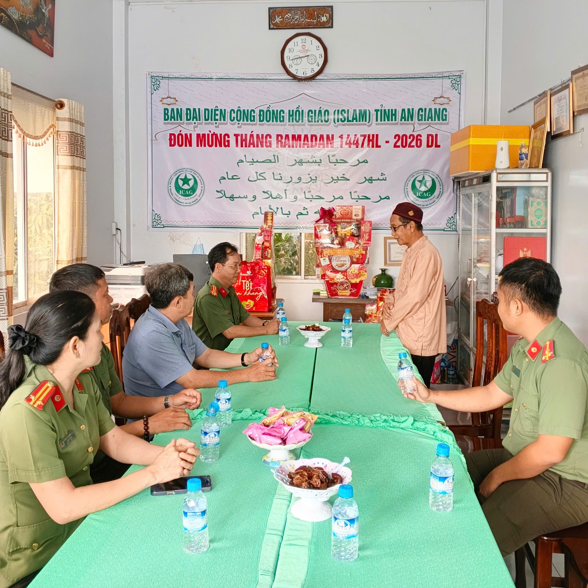 Nhân dịp Xuân Bính Ngọ 2026 và tháng Ramadan của đồng bào dân tộc Chăm, , Phòng An ninh đối ngoại đã đến thăm, tặng quà và chúc Tết Ban đại diện cộng đồng Hồi giáo (Islam) tỉnh An Giang.