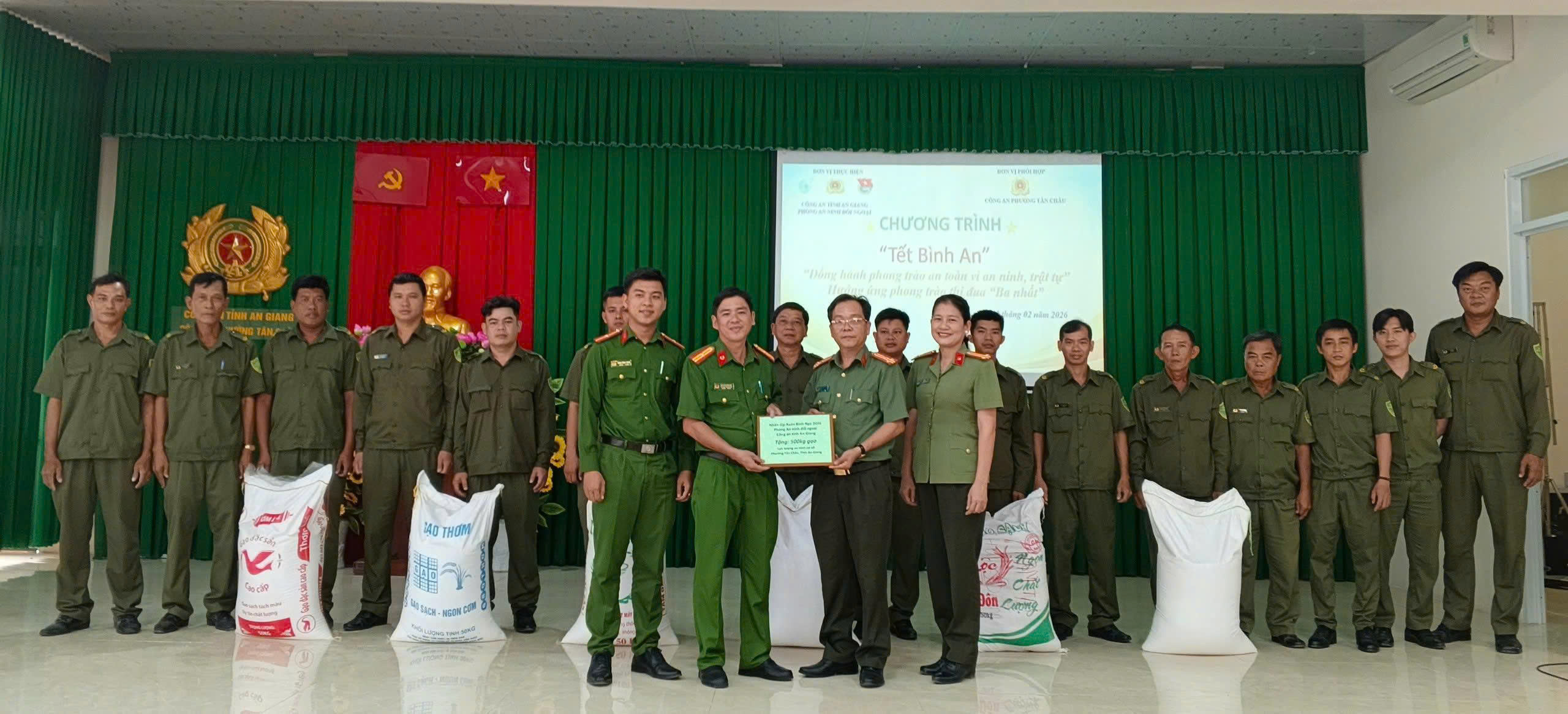 Trong không khí rộn ràng đón Tết Nguyên đán Bính Ngọ 2026, Phòng An ninh đối ngoại Công an tỉnh đã tổ chức chương trình “Tết Bình An”, chúc Tết và trao quà cho Lực lượng tham gia bảo vệ an ninh, trật tự ở cơ sở tại phường Tân Châu và xã Châu Phong.