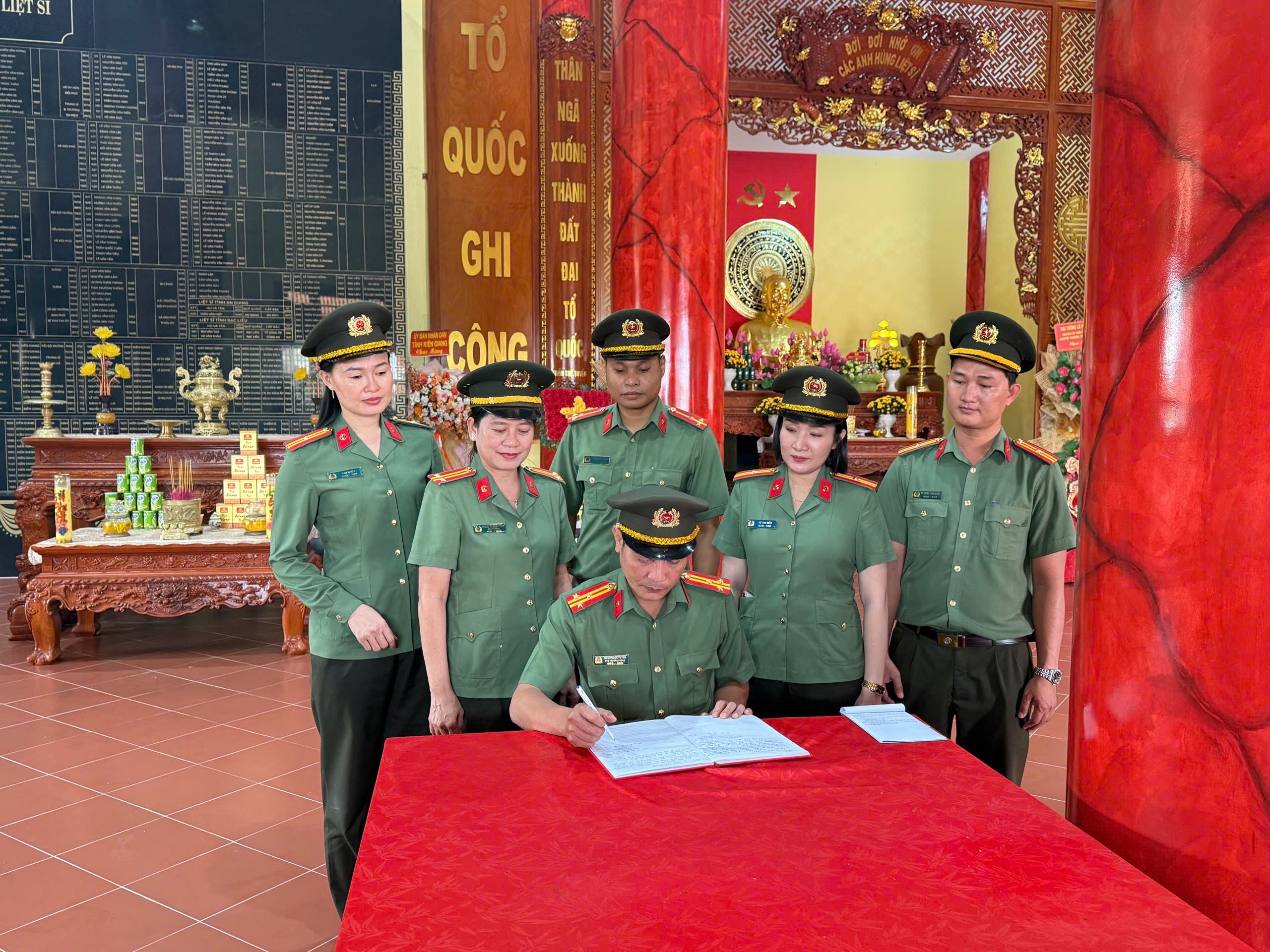Lãnh đạo phòng An ninh đối ngoại viết cảm tưởng tại Khu chứng tích chiến tranh Rừng tràm Ban Biện Phú.