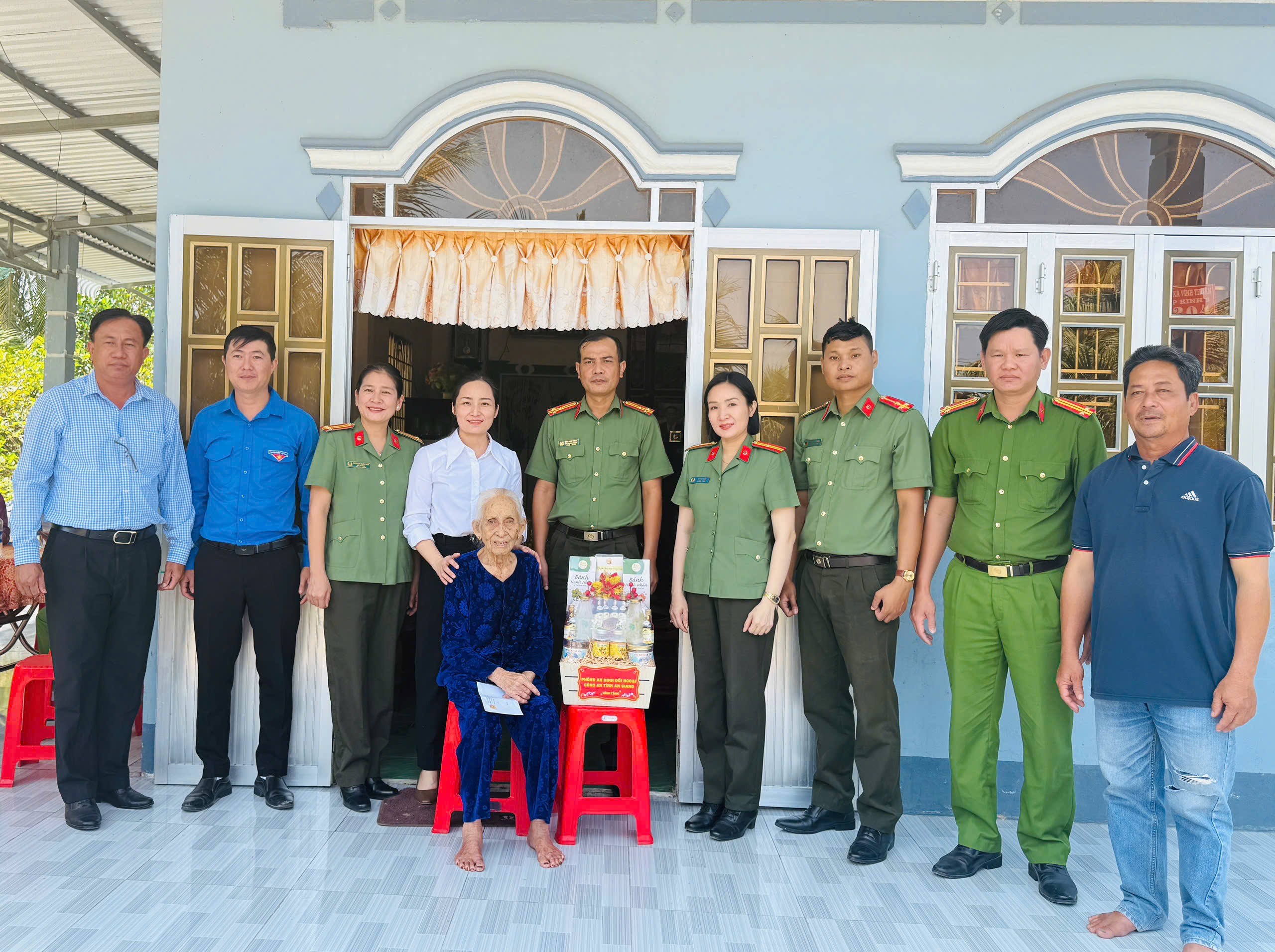 Phòng An ninh đối ngoại thăm hỏi, chúc Tết và trao quà cho bà Mẹ Việt Nam anh hùng Lê Thị Hai, ngụ tại xã Vĩnh Thuận.