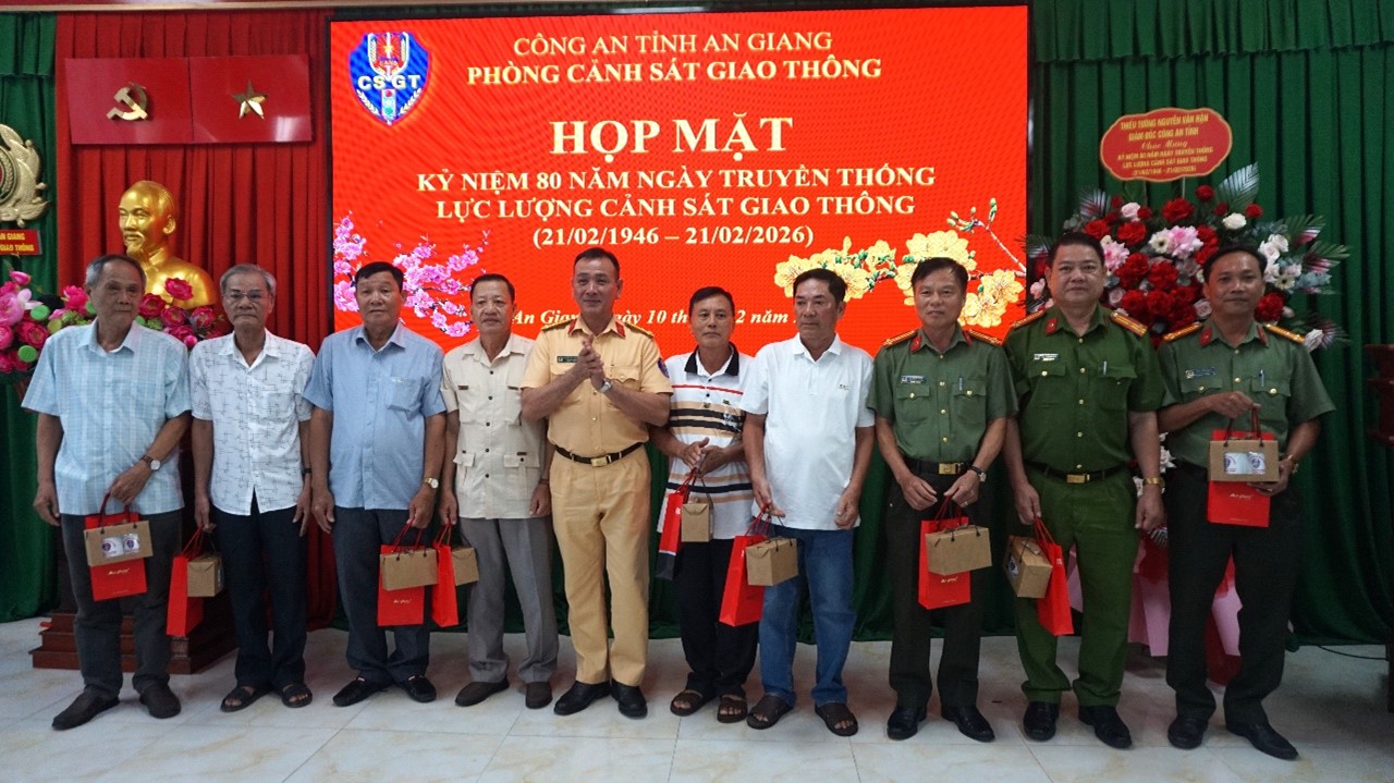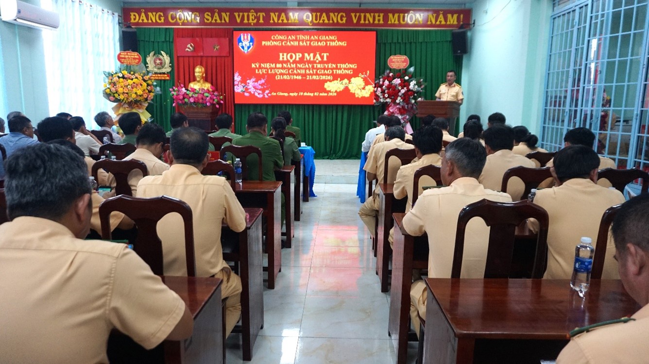 Chiều ngày 10/02/2026, Phòng Cảnh sát giao thông Công an tỉnh An Giang đã long trọng tổ chức buổi họp mặt kỷ niệm 80 năm ngày truyền thống lực lượng Cảnh giao thông (21/02/1946-21/02/2026). Đến dự buổi họp mặt có đ/c đại tá Diệp Văn Thế - Phó Giám đốc Công an tỉnh cùng các đồng chí nguyên là lãnh đạo Phòng Cảnh sát giao thông Công an tỉnh qua các thời kỳ.