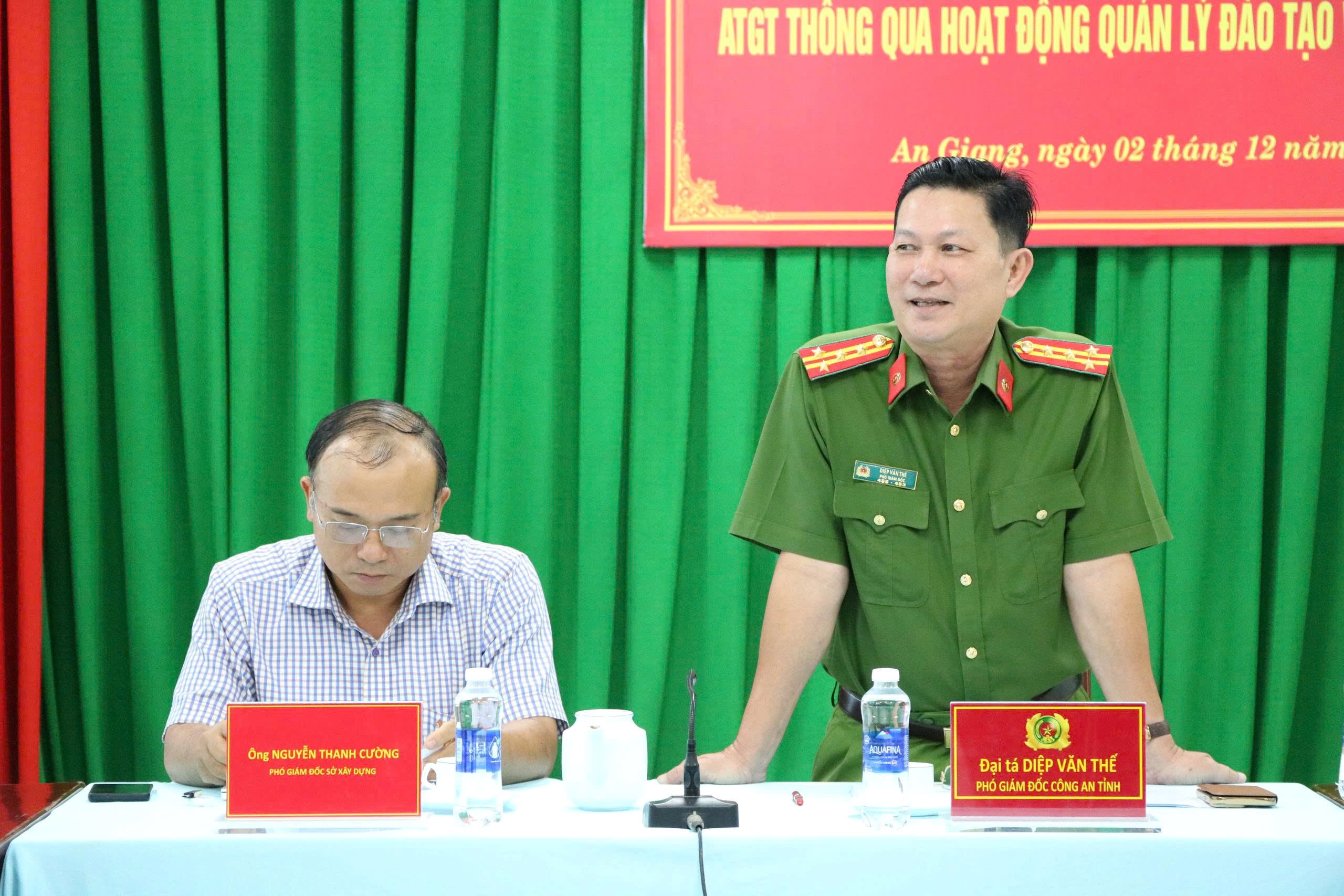 ‎Phòng Cảnh sát giao thông Công an tỉnh An Giang vừa tổ chức buổi tọa đàm chuyên đề nhằm tìm kiếm các giải pháp trong công tác bảo đảm trật tự, an toàn giao thông thông qua việc siết chặt quản lý hoạt động đào tạo và sát hạch lái xe – lĩnh vực đóng vai trò then chốt trong việc hình thành ý thức, kỹ năng và văn hóa giao thông cho người điều khiển phương tiện. Đồng chí Đại tá Diệp Văn Thế, Phó Giám đốc Công an tỉnh An Giang dự và chủ trì buổi tọa đàm.
