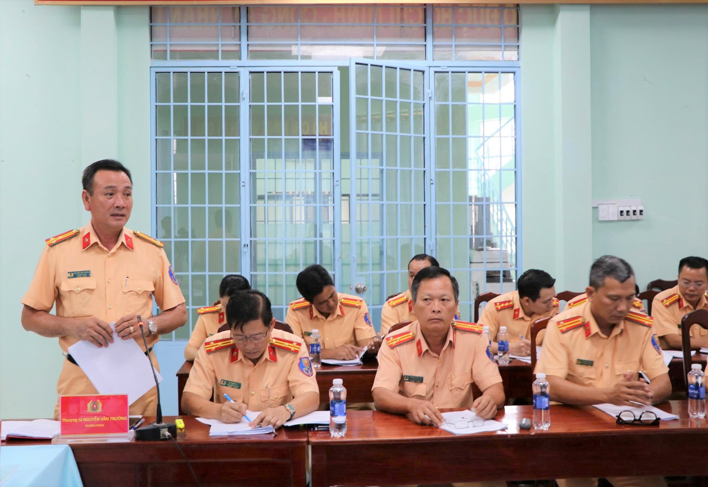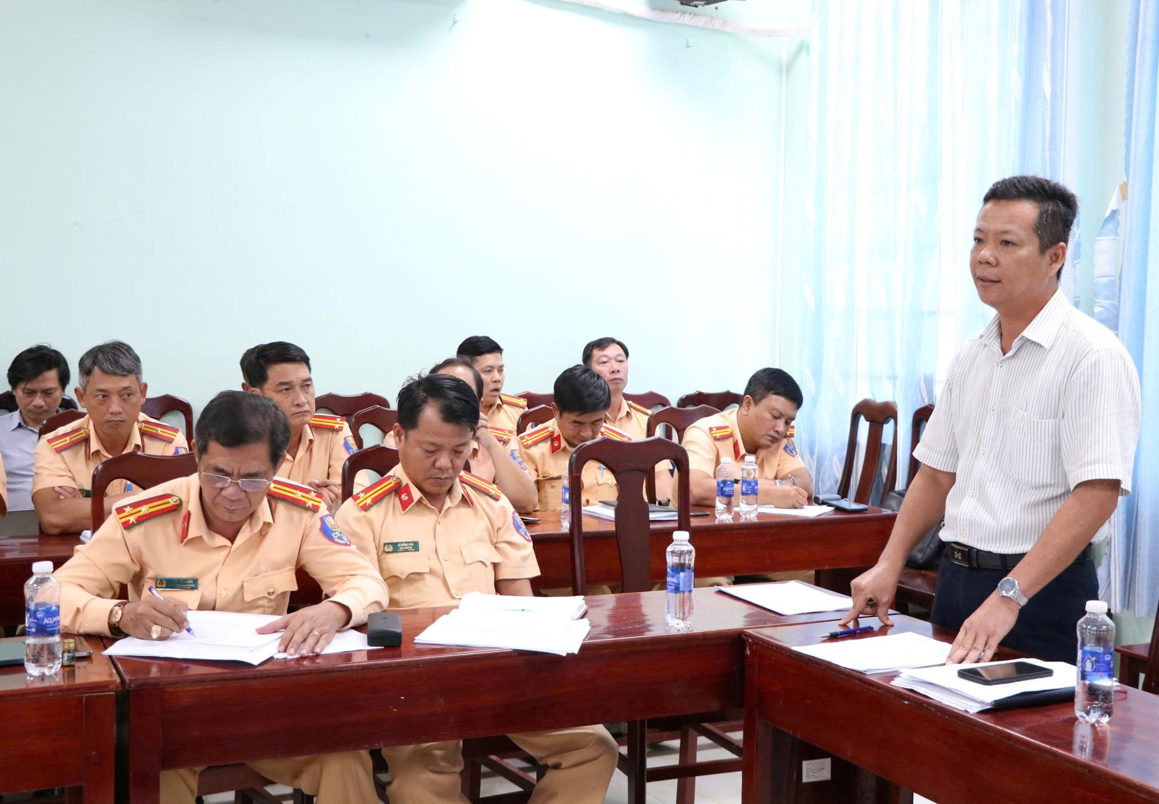 Đồng chí Thượng tá Nguyễn Văn Trường, Trưởng phòng Cảnh sát giao thông Công an tỉnh phát biểu tại buổi toạ đàm