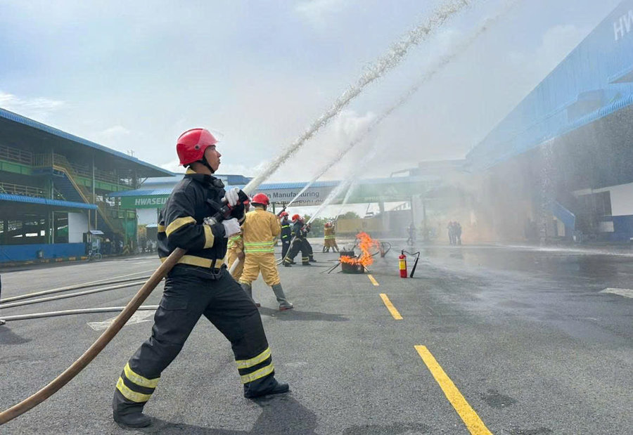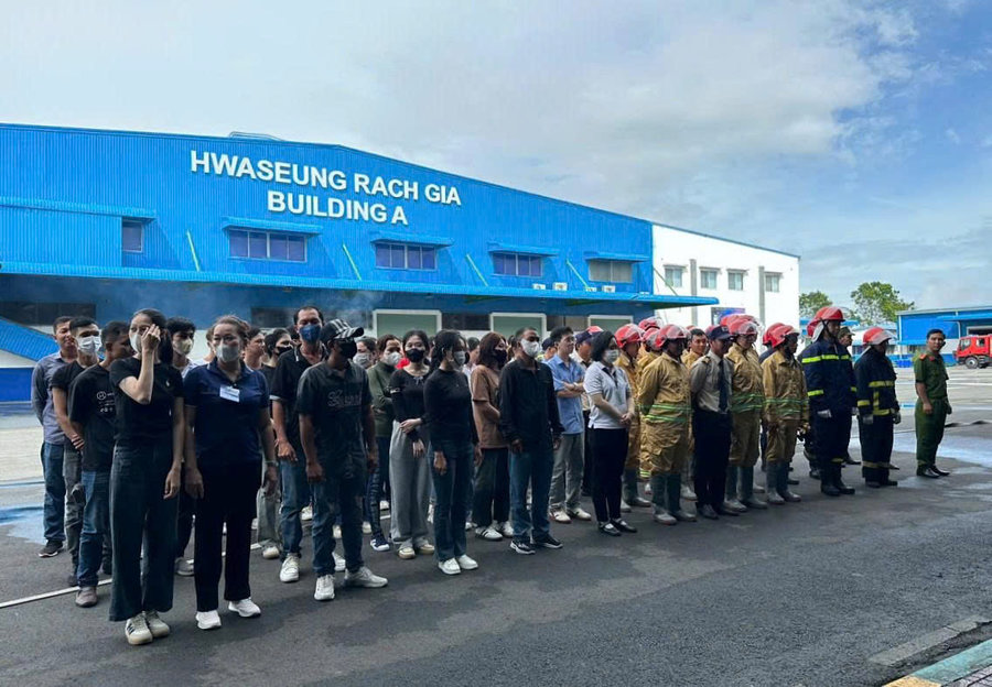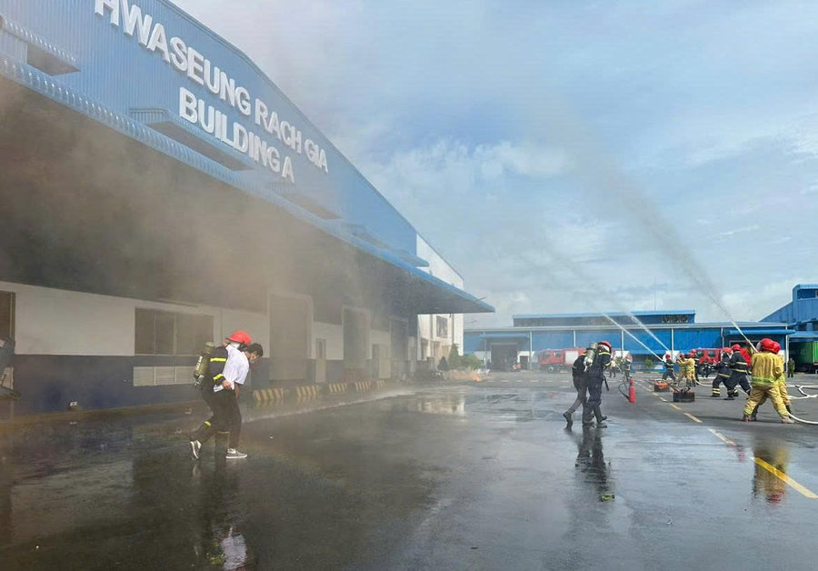 Toàn cảnh buổi thực tập chữa cháy và cứu nạn cứu hộ tại Công ty TNHH Hwa Seung