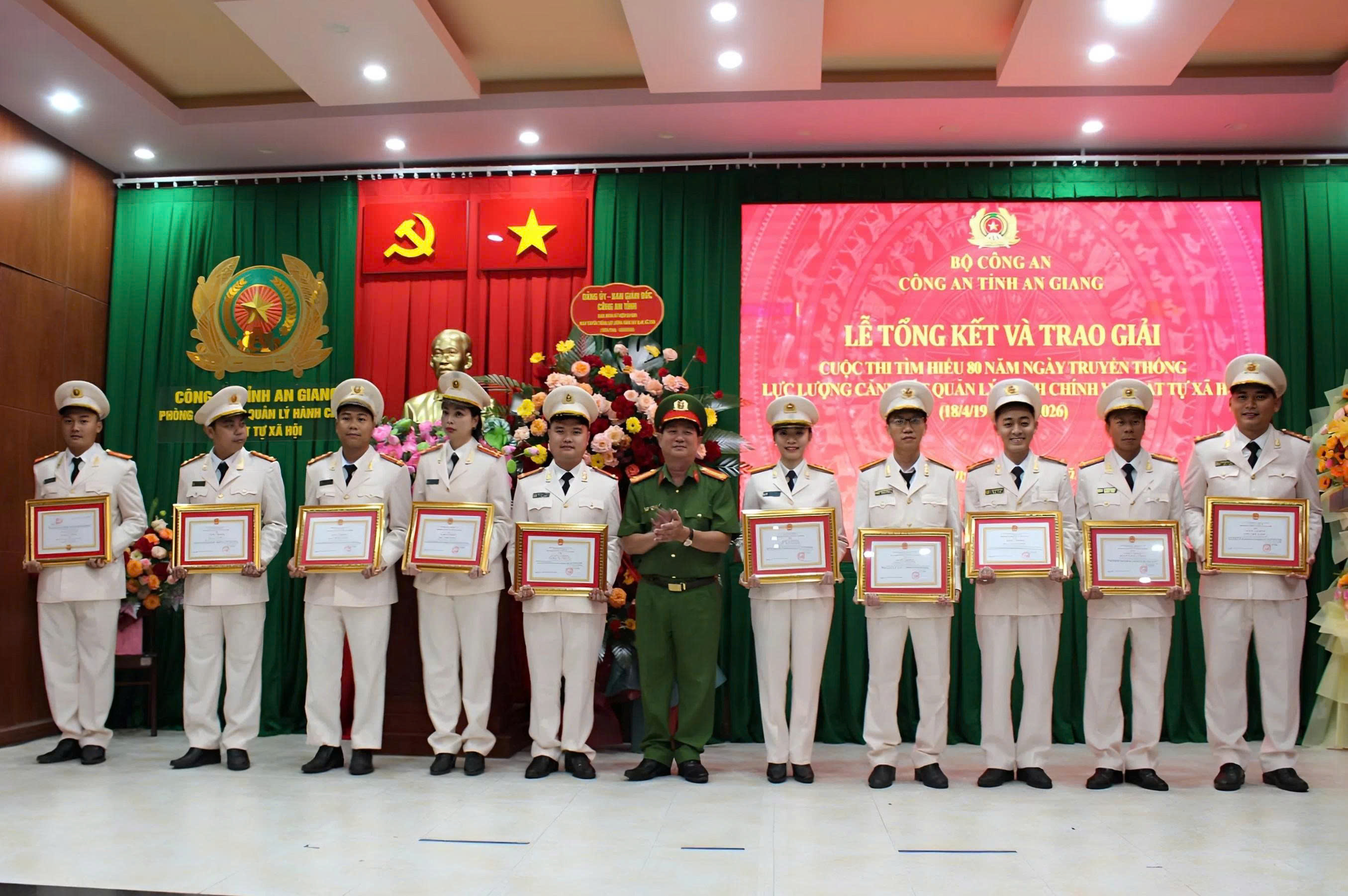 Nhân dịp kỷ niệm 80 năm Ngày truyền thống lực lượng Cảnh sát quản lý hành chính về trật tự xã hội (18/4/1946 – 18/4/2026), Công an tỉnh An Giang đã tổ chức buổi họp mặt ôn lại truyền thống vẻ vang của lực lượng qua chặng đường 80 năm xây dựng, chiến đấu và trưởng thành; đồng thời biểu dương, khen thưởng các tập thể, cá nhân có thành tích xuất sắc trong phong trào thi đua chào mừng sự kiện đặc biệt này.